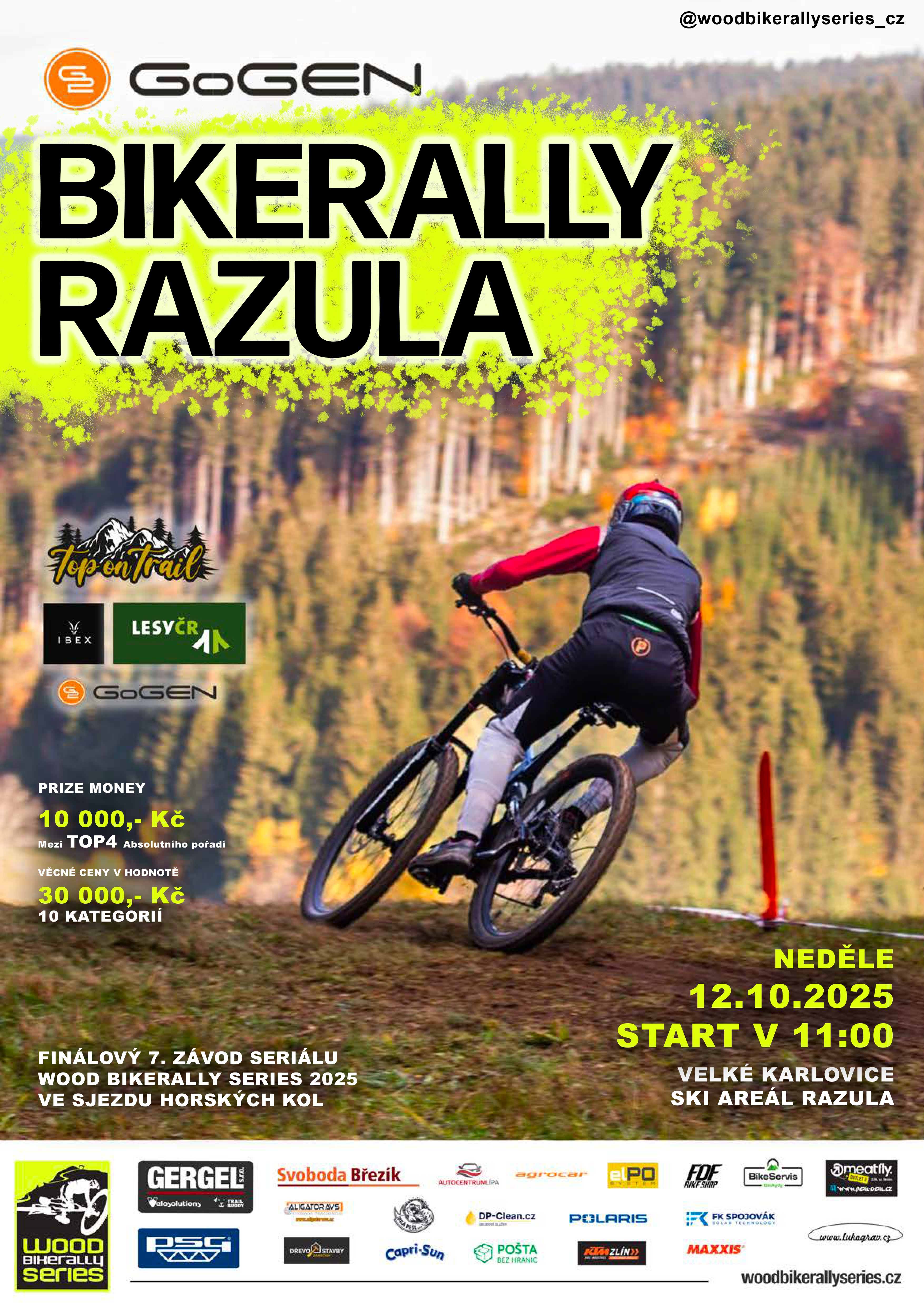 Neděle 12. října roztočí posedmé a letos naposledy kola Gergel Wood Bikerally Series 2025. V krásném prostředí Ski Areálu Razula ve Velkých Karlovicích prověří bajkery prudké technické tratě a nevyzpytatelné počasí. Mezi jezdci jsou karty rozdány celkem jasně, a špička všech kategorií přesně ví, co potřebuje předvést. Kdo chybuje a kdo potvrdí dominanci? Kdo udrží nervy na uzdě a dojede si pro titul ve své kategorii? To si nenechte ujít už tento víkend.
