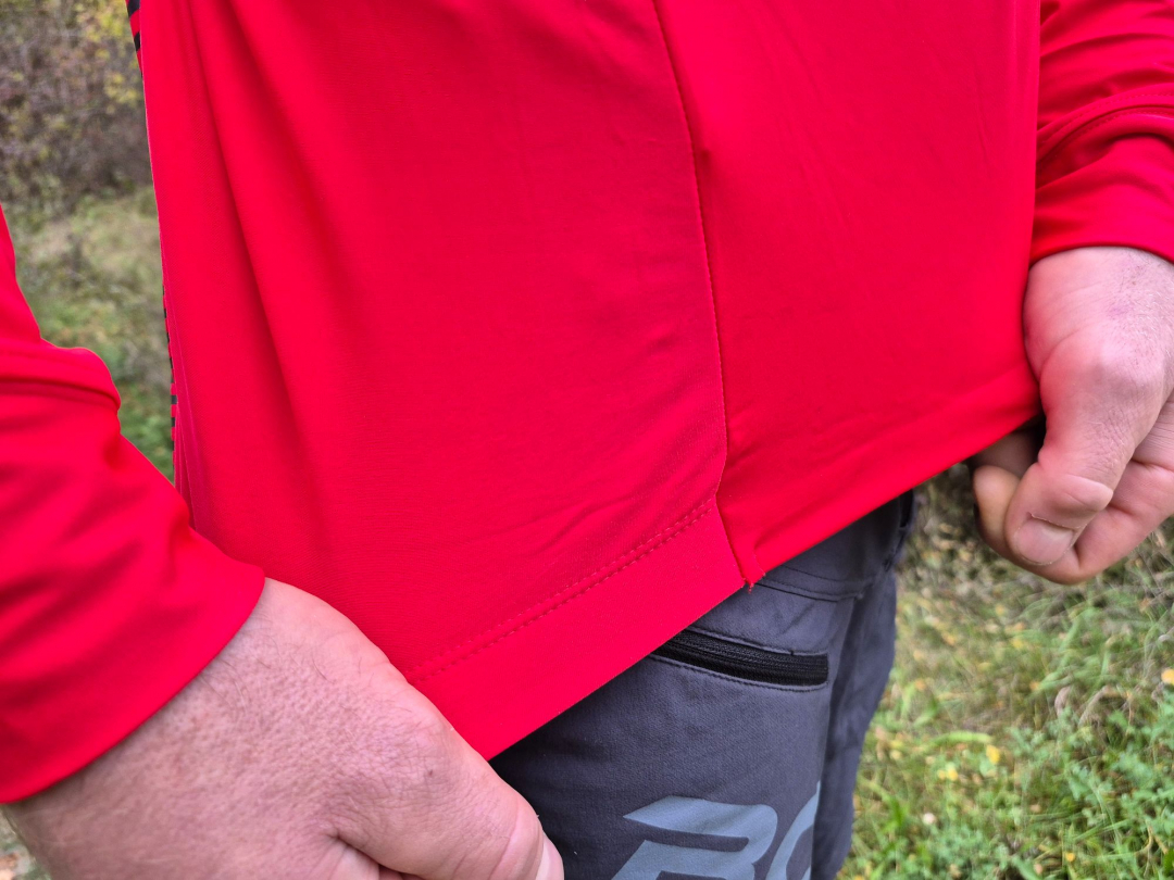 Velikostně odpovídá, já se 185 cm a 90 kg beru obvykle XL a ani zde tomu nebylo jinak. Možná bych chtěl ještě o trochu delší zádový díl, ale i ve stávající délce mi netáhlo na kříž. Spodek drží na svém místě i při jízdě s batohem, to díky silikonovému proužku na spodním lemu, který zabraňuje vykasávání bundy.