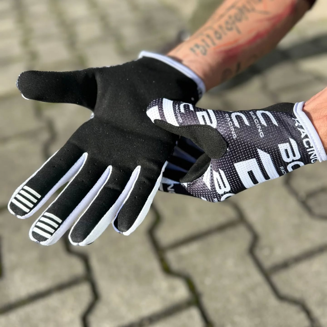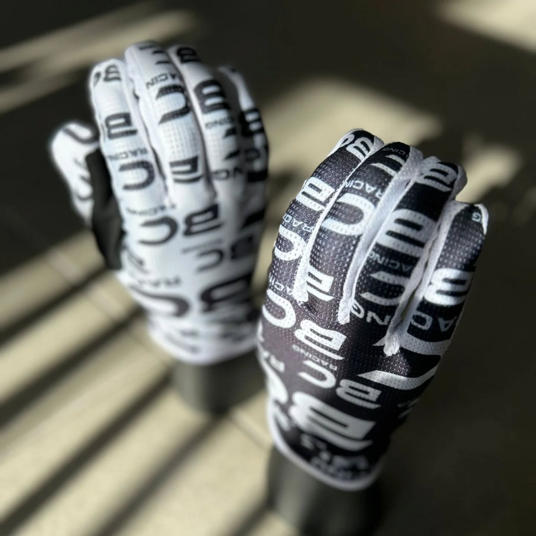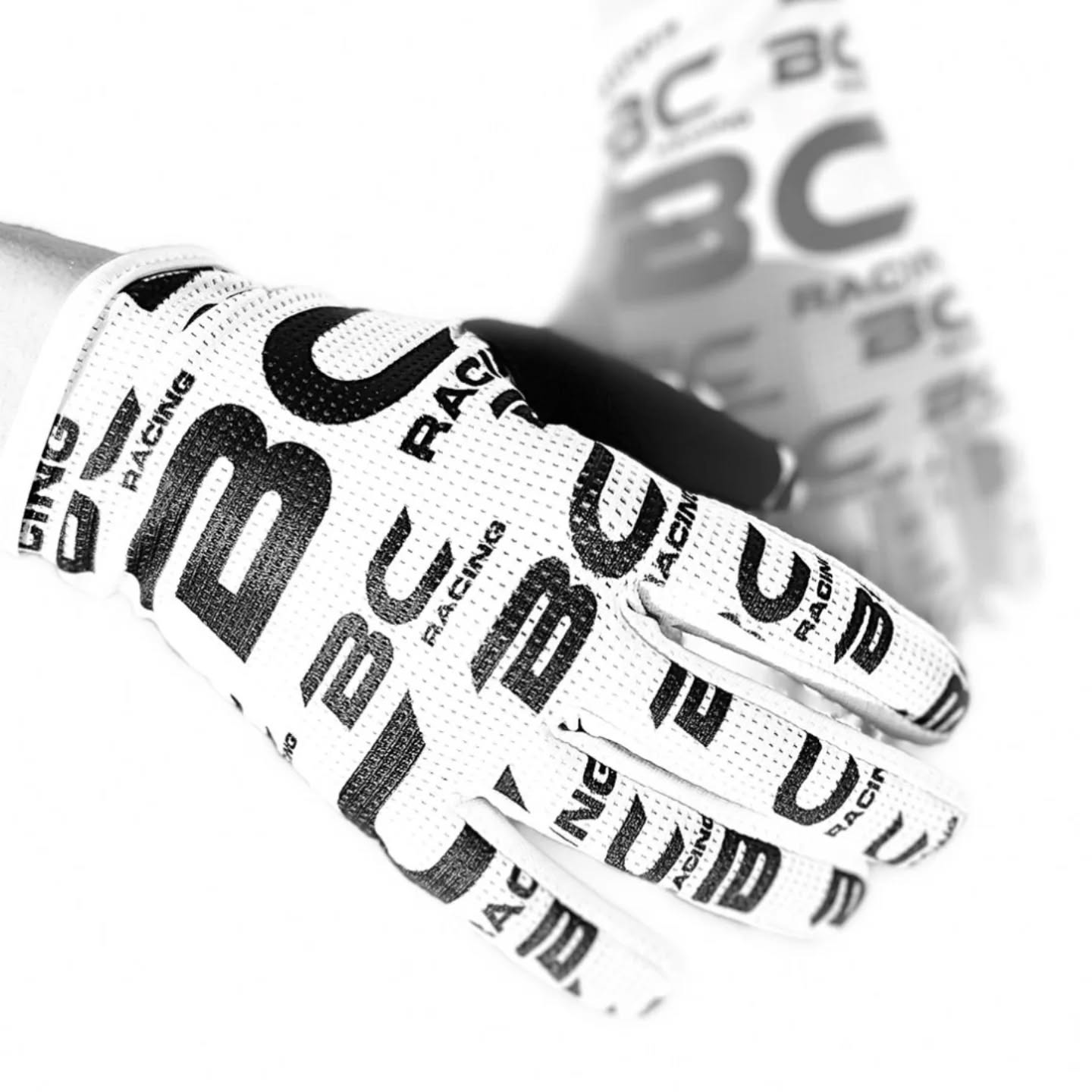 Rukavice BC Racing vyrobené z 85% polyesteru s 10% podílem elastanu s jednoduchou hladkou dlaňovou částí jsou k dispozici ve dvou barevných provedeních, černá a bílé, ve velikostech od nejmenších dětských YS až po dospělé XL.