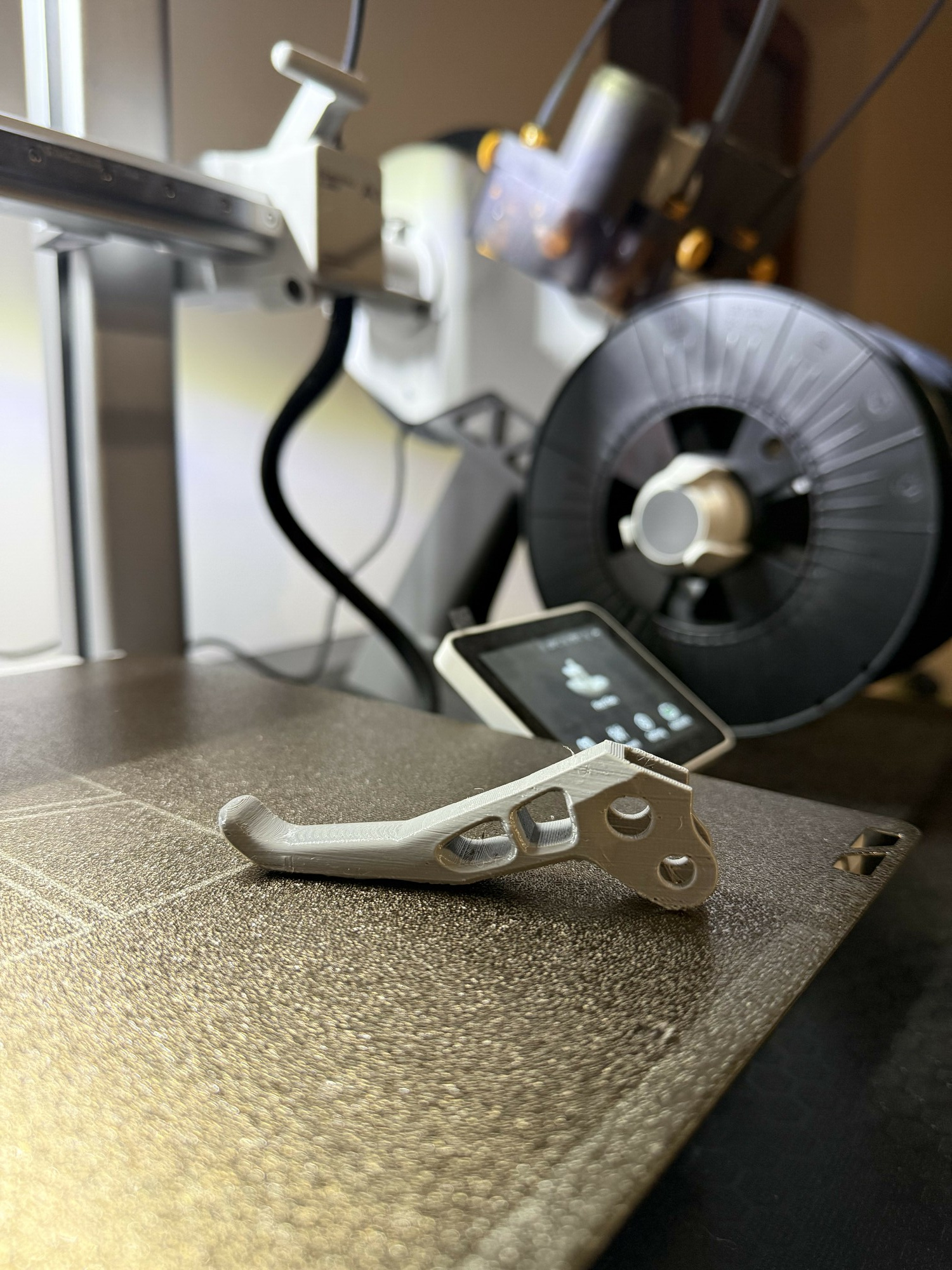 K vánocům jsem dostal od rodičů 3D tiskárnu na plastové bužírkové filamenty a hned jsem začal všechno možné tisknout. Díky škole umím zdatně vytvářet 3D modely a také si je odsimulovat, abych zjistil jaké zatížení snese. Prvotní výtisky byly samozřejmě různé vychytávky do domácnosti a další serepetinky, které si každý začínající 3D tiskař nemůže odpustit.