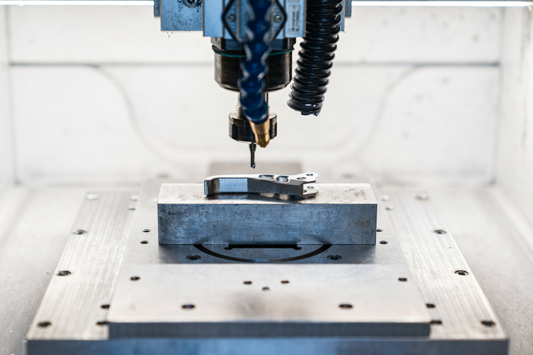 Jelikož má rodinná firma Gebhardt 3-osé CNC stroje a páčka je tří dimenzionální, nelze provést frézovací proces na jedno upnutí, ale na více. V našem případě, než vznikne finální páčka, musí se polotovar s páčkou čtyřikrát otočit do jiné polohy/upnutí. To dělá celou výrobu složitou, protože je náročné provést upnutí přesně, aby i po otočení o 180 stupňů najel stroj do přešné polohy a frézoval tam kde má. Všechno tohle je o precizním nastavení stroje, profesionálnímu přístupu a dlouholetým zkušenostem, což tohle všechno má Petr na starosti. Když po tomhle náročném úkonu vytáhnete páčku ze stroje, musí se ještě zkontrolovat všechny funkční díry, zdali splňují tolerance a mohou jít na další pracovní stanoviště.