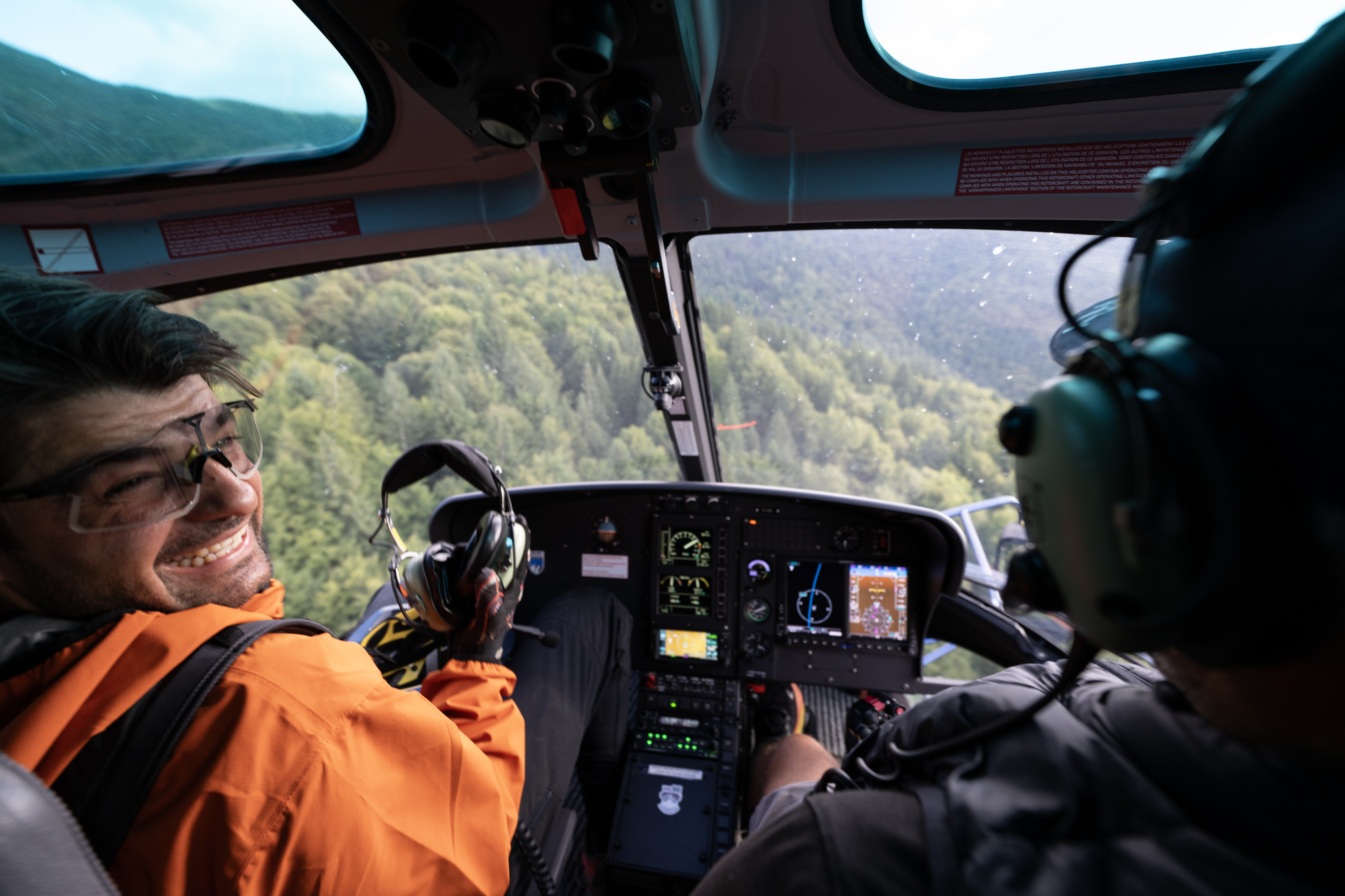 Gaspi už v minulosti podobným způsobem létal do divočiny v Britské Kolumbii, a to jak vrtulníkem, tak i hydroplánem. S Cristianem Duncou bylo plánování mnohem jednodušší, protože jeho otec Romeo Dunca je špičkový pilot s více než 7 500 nalétanými hodinami - víc, než kolik má nejeden vojenský pilot. S vrtulníky Airbus zajišťuje nejrůznější logistické lety v nepřístupných horách, ale zároveň poskytuje služby i lyžařům a bikerům.