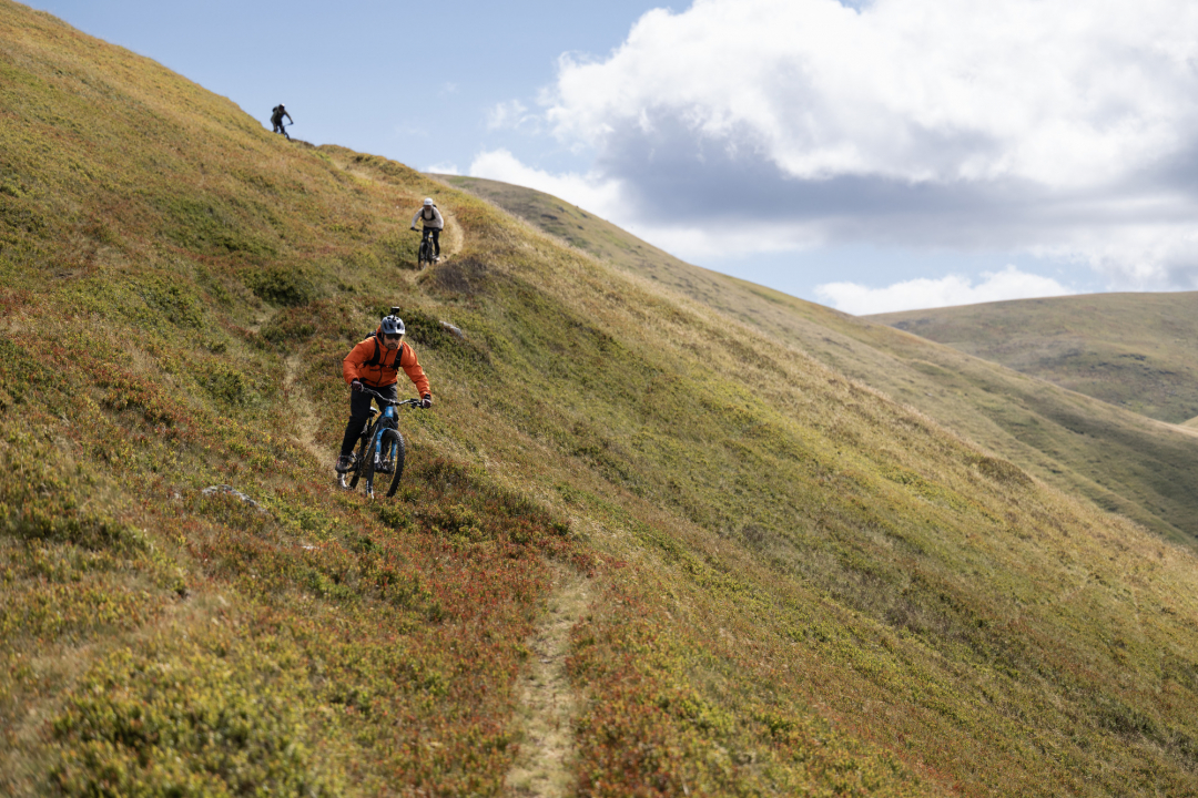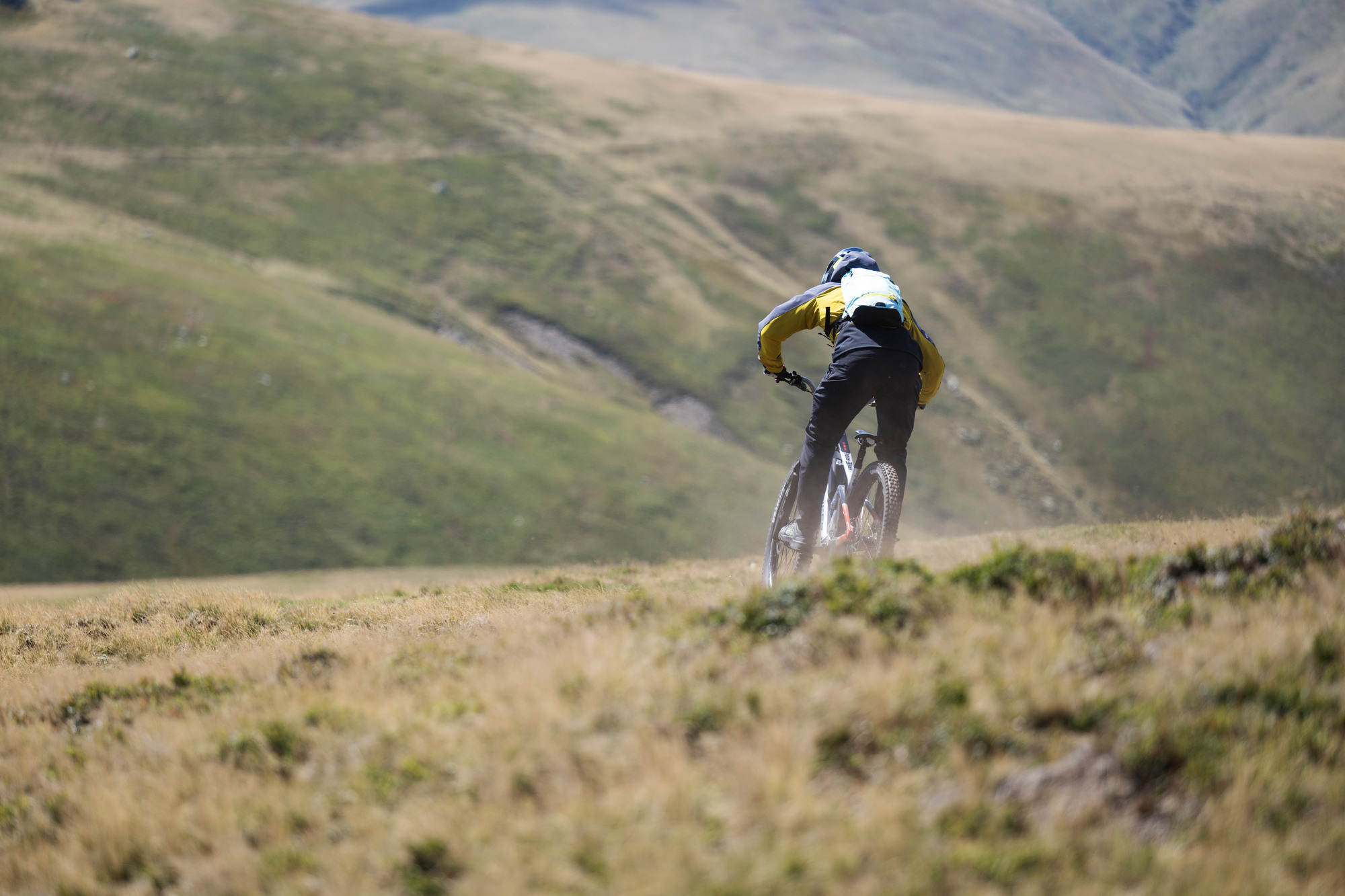 "Buď tlačíte, nebo jedete - tak jednoduché to je," dodává. Tyto brutálně strmé výjezdy a nekonečné vzdálenosti vedly k druhé části nápadu: co kdyby se cyklisté mohli nechat vysadit hlouběji v horách, aby jim zbylo víc energie na cestu zpět? A tak se zrodil koncept heli-e-bikingu.