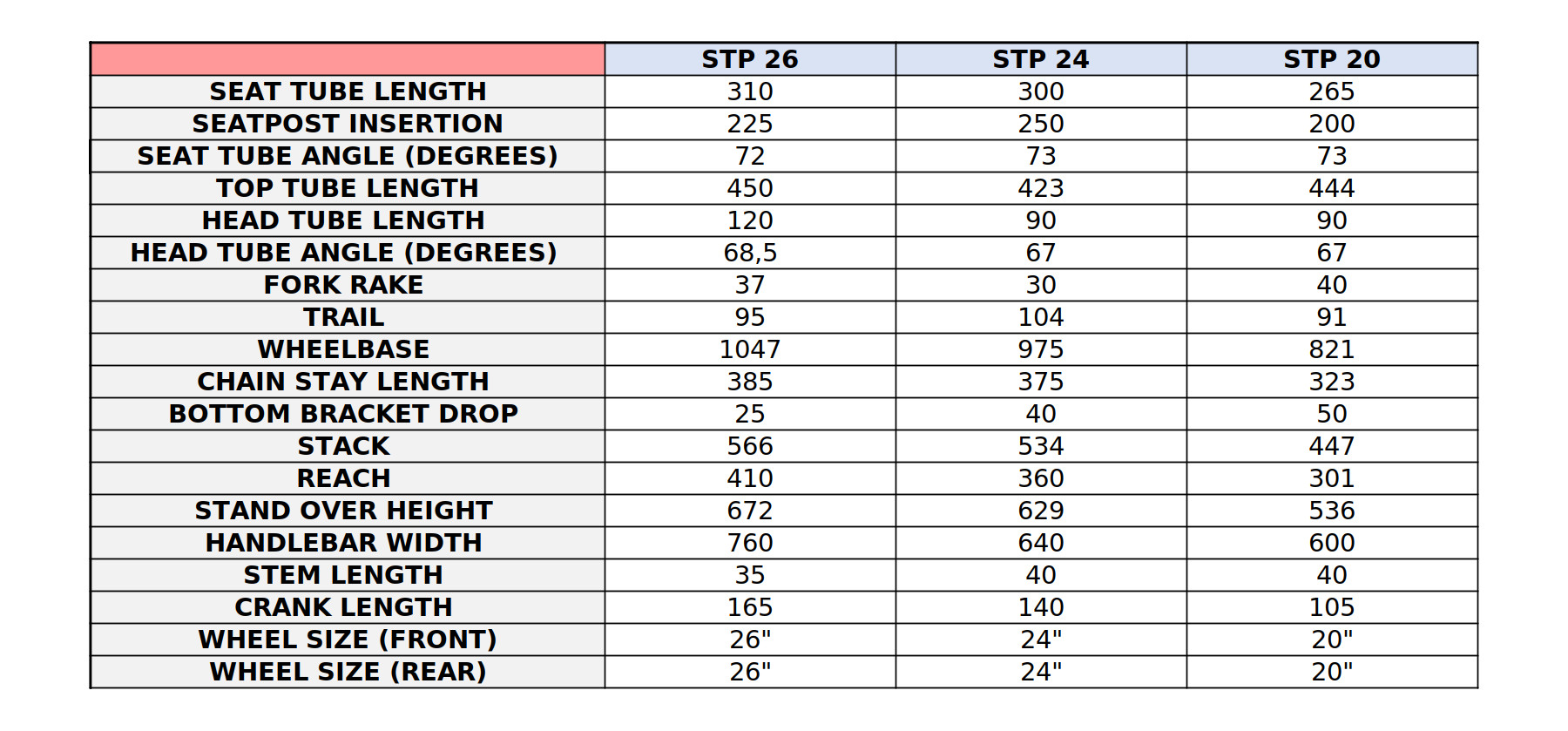Všechny modely řady STP ve velikostech 20", 24" a 26" spojuje lehký a zároveň vysoce odolný hliníkový rám ALUXX. Ten se oproti starším generacím pyšní nejen sníženou hmotností, ale také moderním designem se speciálně profilovanými trubkami. Minimalistické grafické pojetí navíc nabízí čistý vzhled, který dává jezdcům prostor pro vlastní úpravu designu pomocí samolepek.