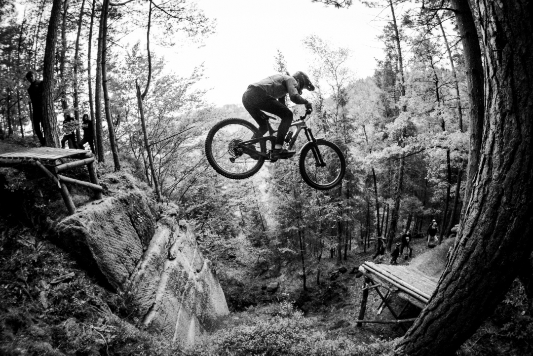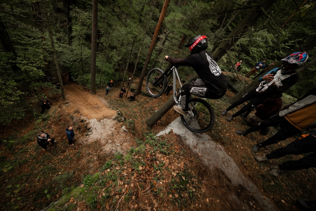 Po cestě dva kompresory, který jenom přeltíš a jsi dole (ať už na kole, nebo mimo něj). Nandavej to všichni! Jedinej Ondra Zoubek lehce závrávoral na dopadu a katapultuje se do chroští na hříbky. Lehkej końárek a špinavý gatě. Dost dobrej výsledek!