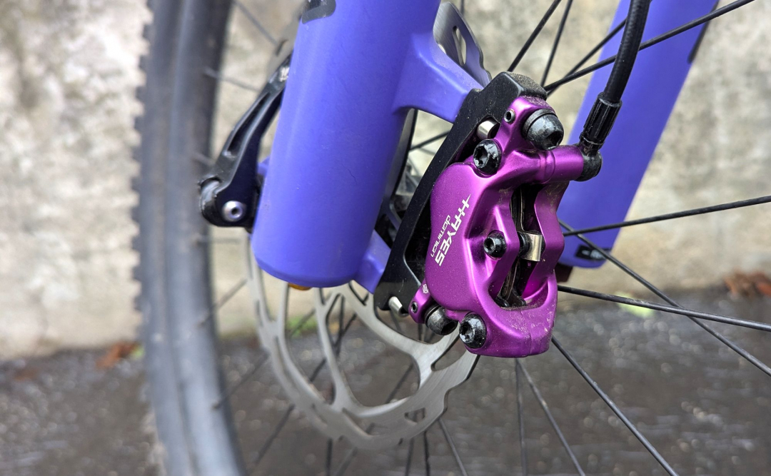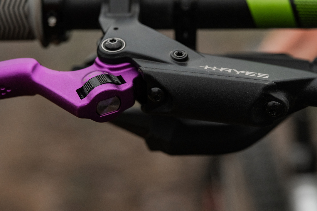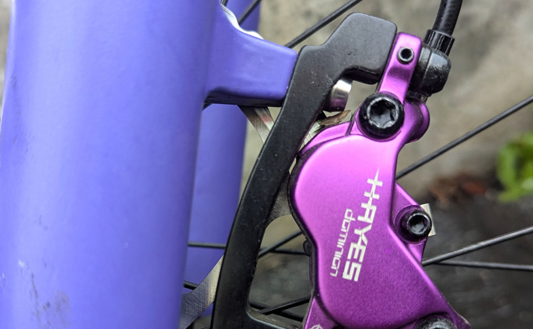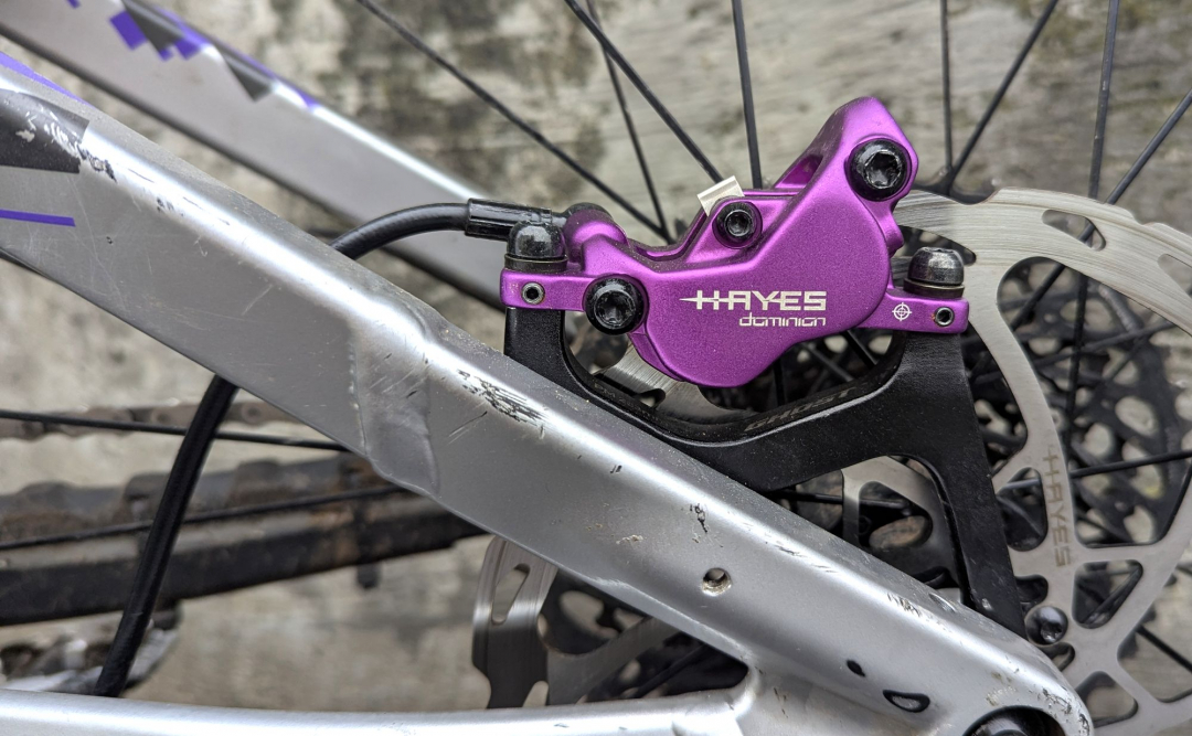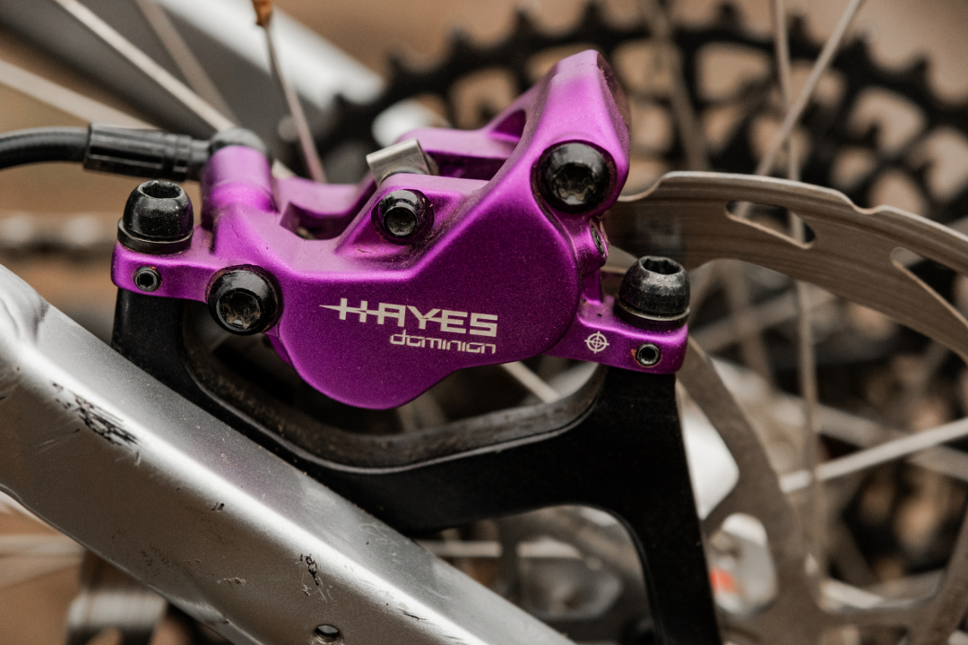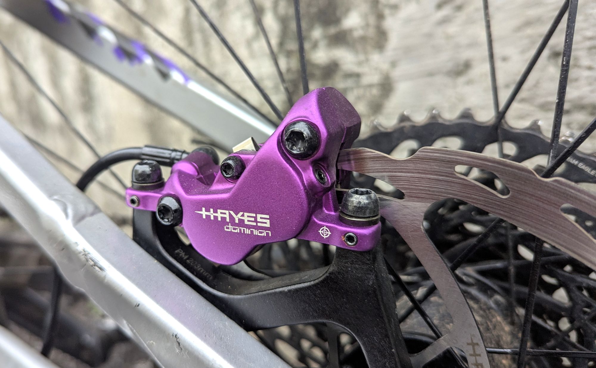 Na testování dostal čtyřpístovou hliníkovou variantu označenou Hayes Dominion A4. K dispozici je buď v černé, bronzové nebo v extravagantní a navíc počtem limitované fialové.