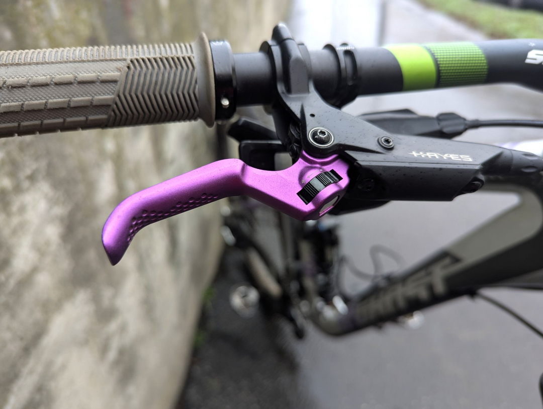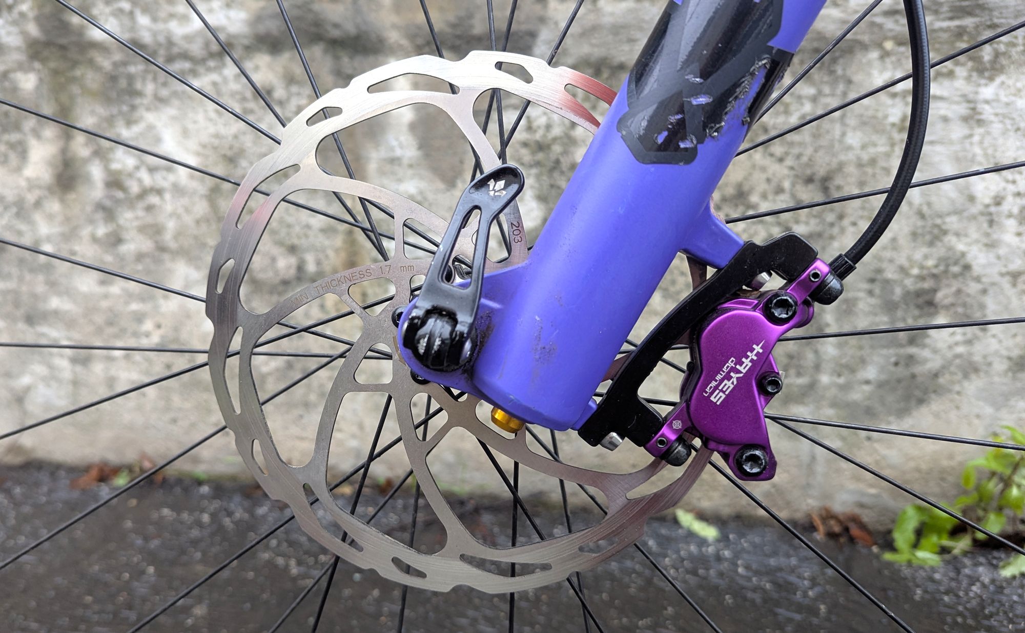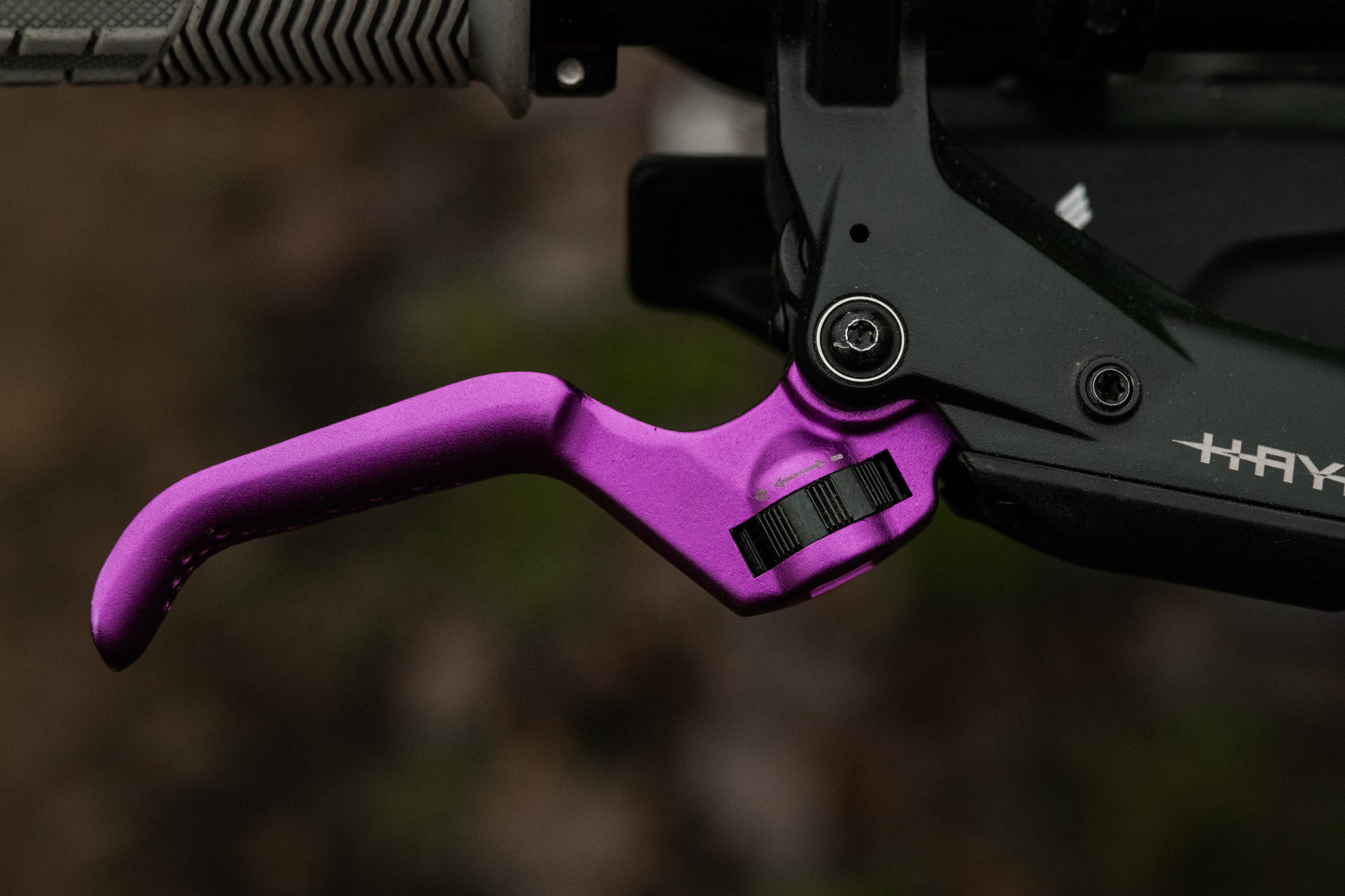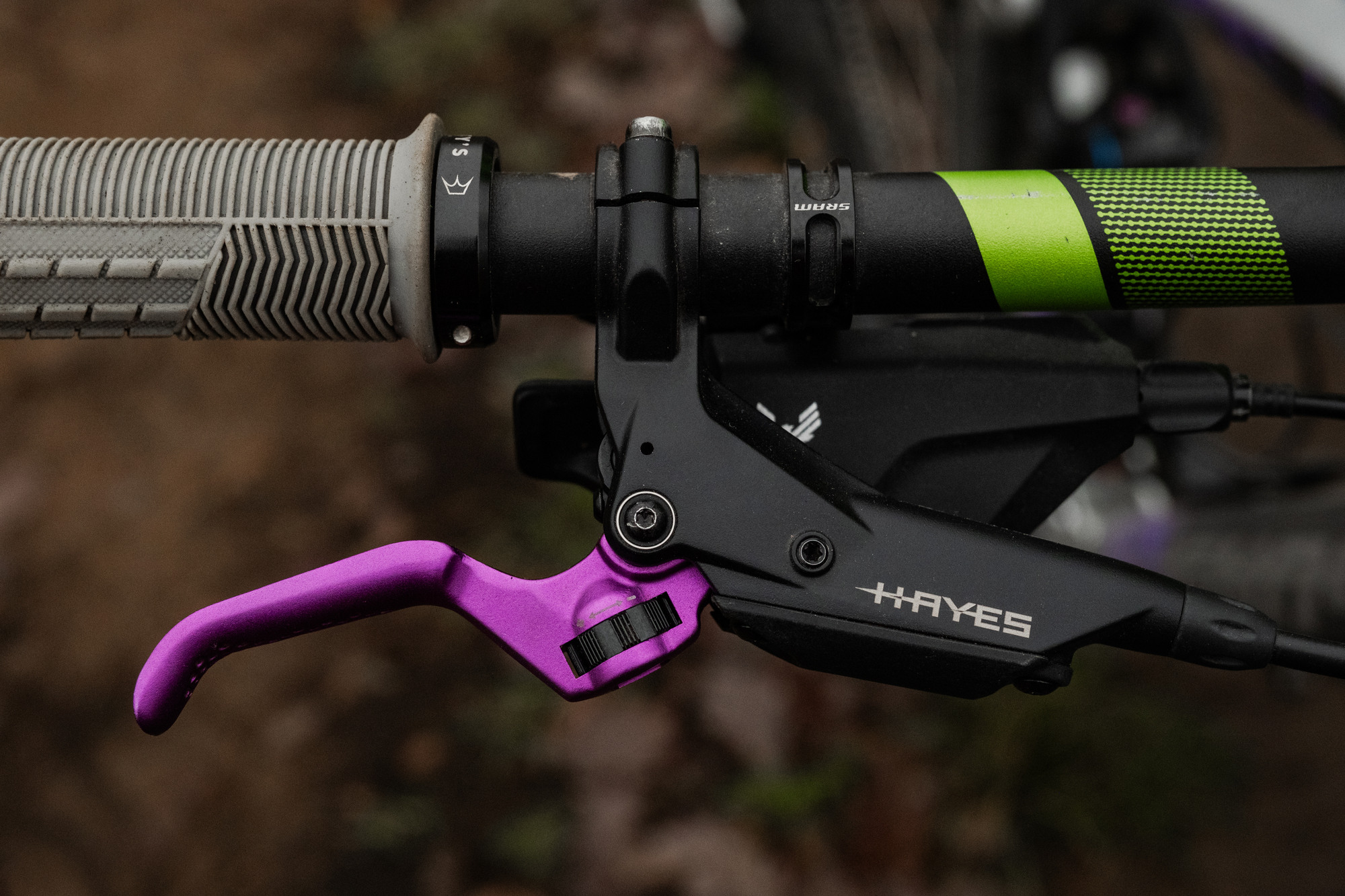 Na testování dostal čtyřpístovou hliníkovou variantu označenou Hayes Dominion A4. K dispozici je buď v černé, bronzové nebo v extravagantní a navíc počtem limitované fialové.