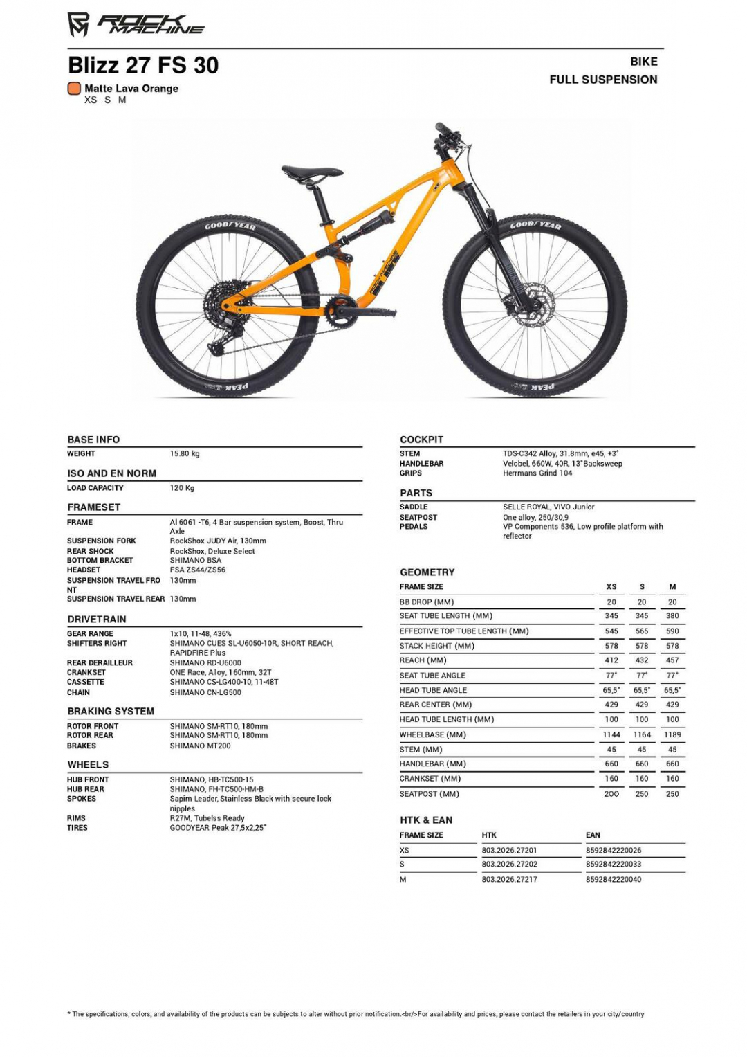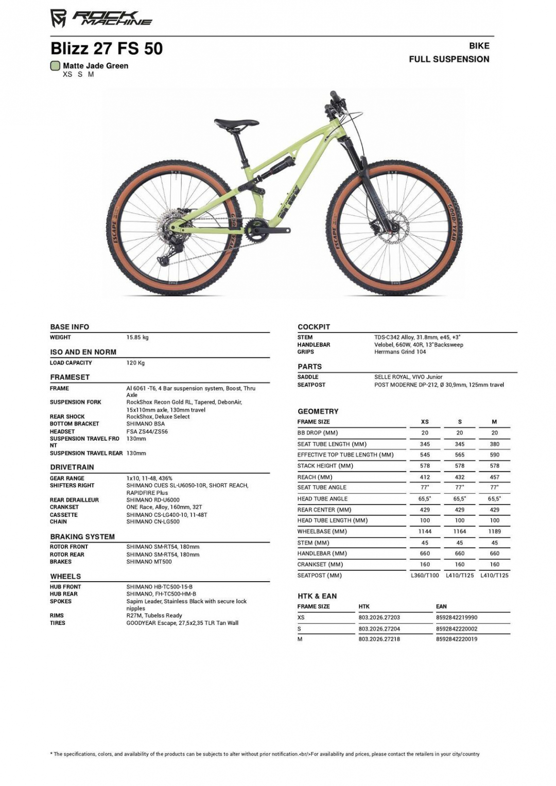 Obě sedmadvacítkové verze míří do nižší střední třídy, základní modelu Blizz 27 FS 30 bude osazen s ohledem na nižší cenu, ať už je vidlice s průměrem 30 mm vnitřních nohou či absencí teleskopické sedlovky. Naopak, vyšší model Blizz 27 FS 50 se jeví bez nutnosti dalších investic (v rámci cenové úrovně).