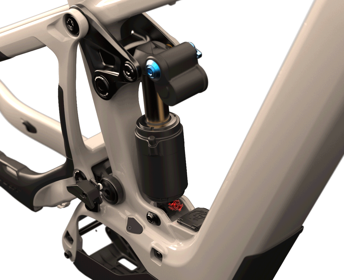Pomocí flip-chipu (na spodním oku tlumiče) si jezdec může zvolit mezi lineárním nebo progresivním chodem odpružení.