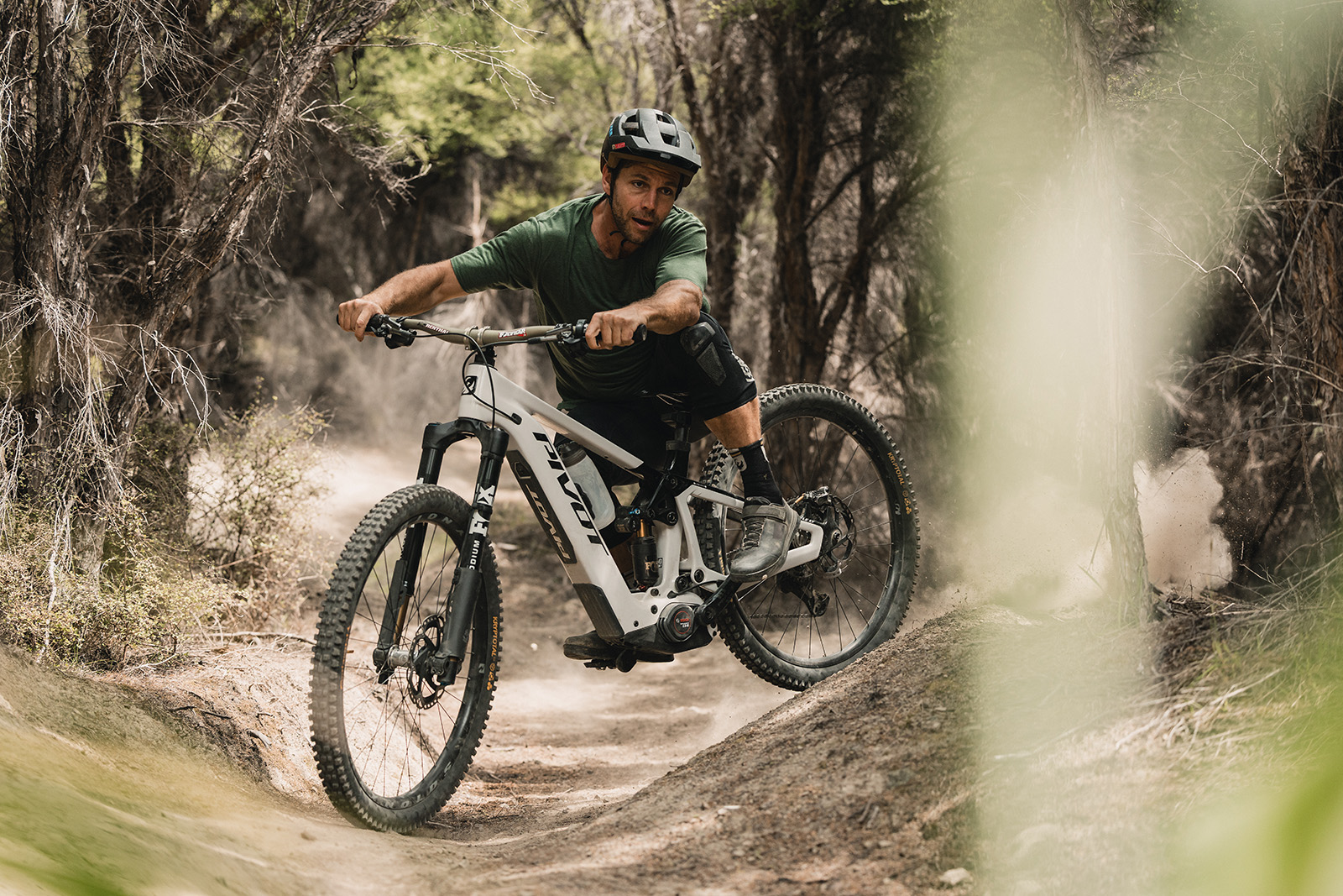 Problém e-biků spočívá v tom, že baterka ve spodní rámové trubce připraví rám o jeho pružnost. Pivot uložil baterii vně rámu na segmenty, které dovolují materiálu pracovat, aniž z rámu baterie udělá kovadlinu. Proto je jízdní projev LTčka tak blízký projevu Firebirdu.