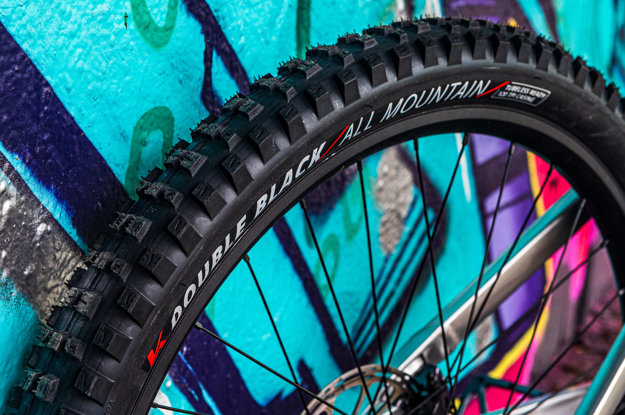 Velkou novinkou letošní sezóny jsou pro mě gumy od Kendy. V tomhle setupu jedu Double Black v All Mountain casingu. Nenechte se mýlit, pořád se bavíme o pláštích s váhou kolem 1050 g, žádné papíry. Vzorek je takový poctivý univerzál. Kenda nabízí ještě tvrdší varianty v Enduro a Downhill casingu, ale na moje bikeparkové ježdění je lehčí verze naprosto dostačující. Navíc to doplňuji TPU dušemi protože váha na kolech je prostě znát vždycky. Duše jsou prostě jistota a u freeride biku je volím raději než bezduše. V běžném provozu v bikeparku vozím tlaky kolem 2-2,5baru, ale na víc dirtové a nebo fakt velké skoky je to někdy i 3,5 a tam už bezduším moc nevěřím.