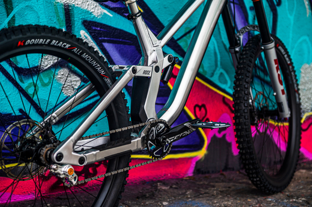 Kola Rose jezdím už patnáctým rokem a tenhle freeride bike vyšel na přelomu let 2023 a 2024. Jde o největší kolo v nabídce. Rám má zdvih 190 nebo 200 mm dle specifikace a je možné ho koupit jak s jednokorunkovou, tak i dvoukorunkovou vidlicí. Sériově jsou všechny velikosti stavěny jako mullet, tedy 27,5" vzadu a 29" vpředu.