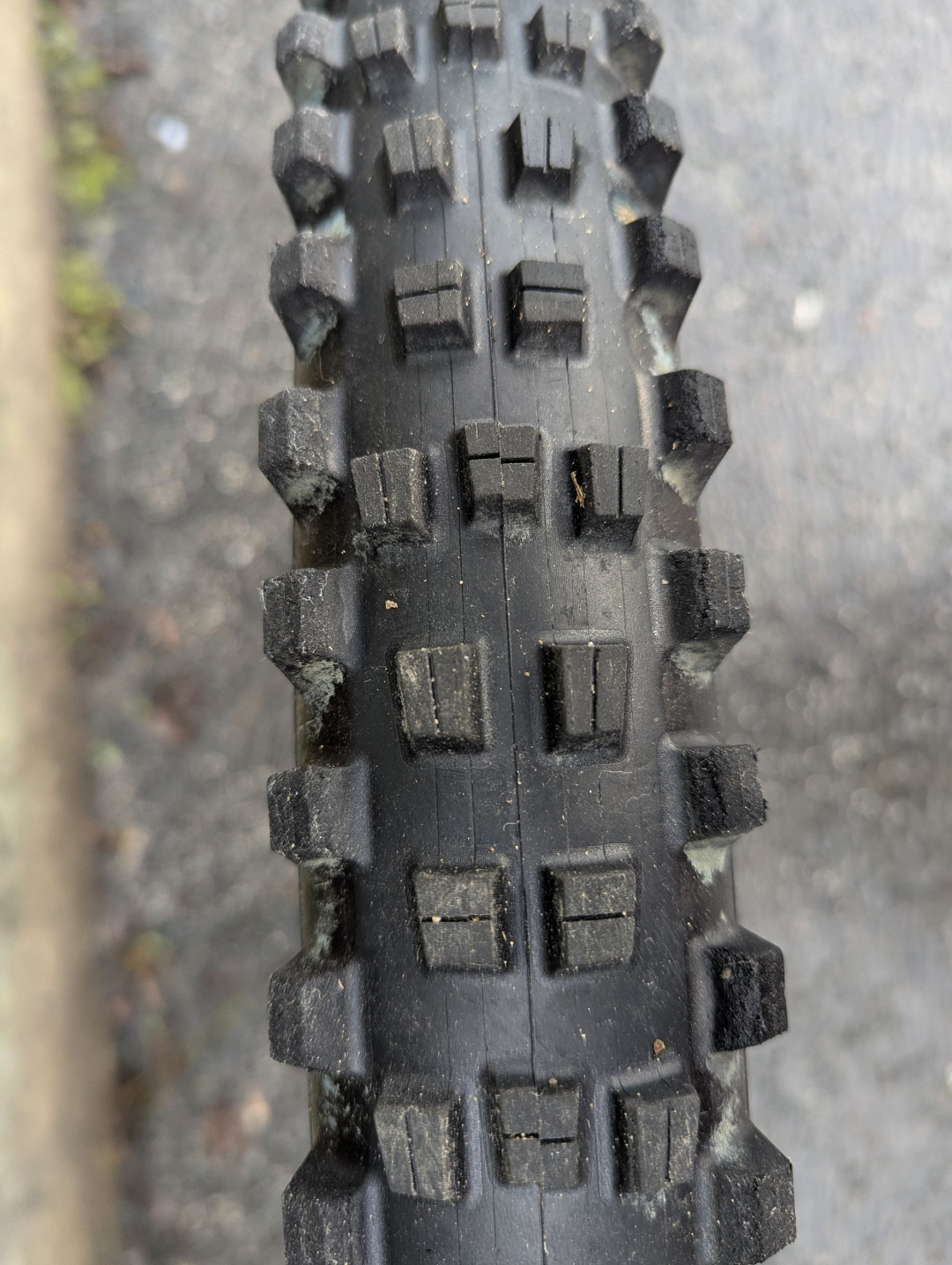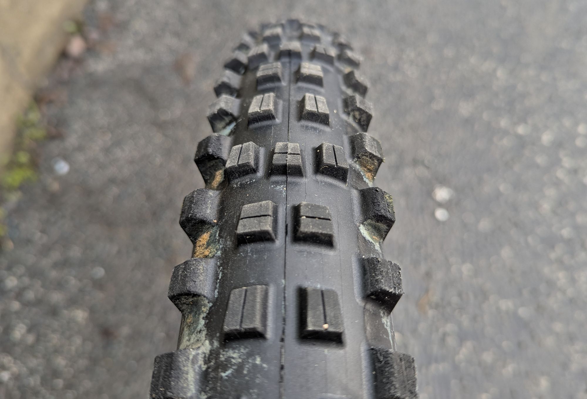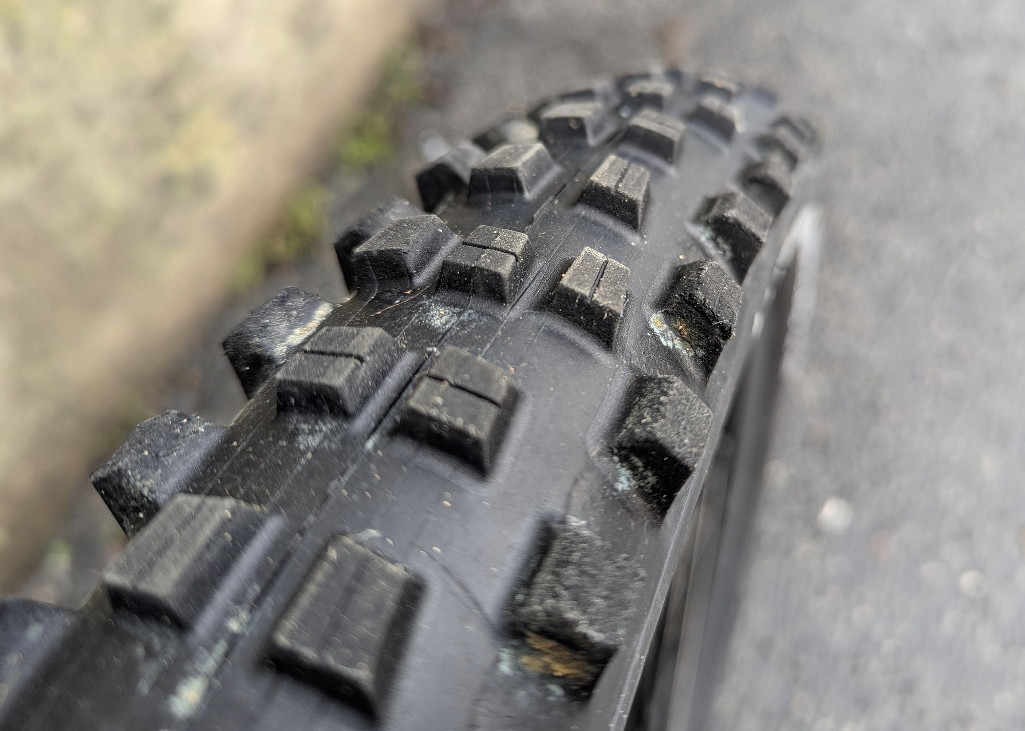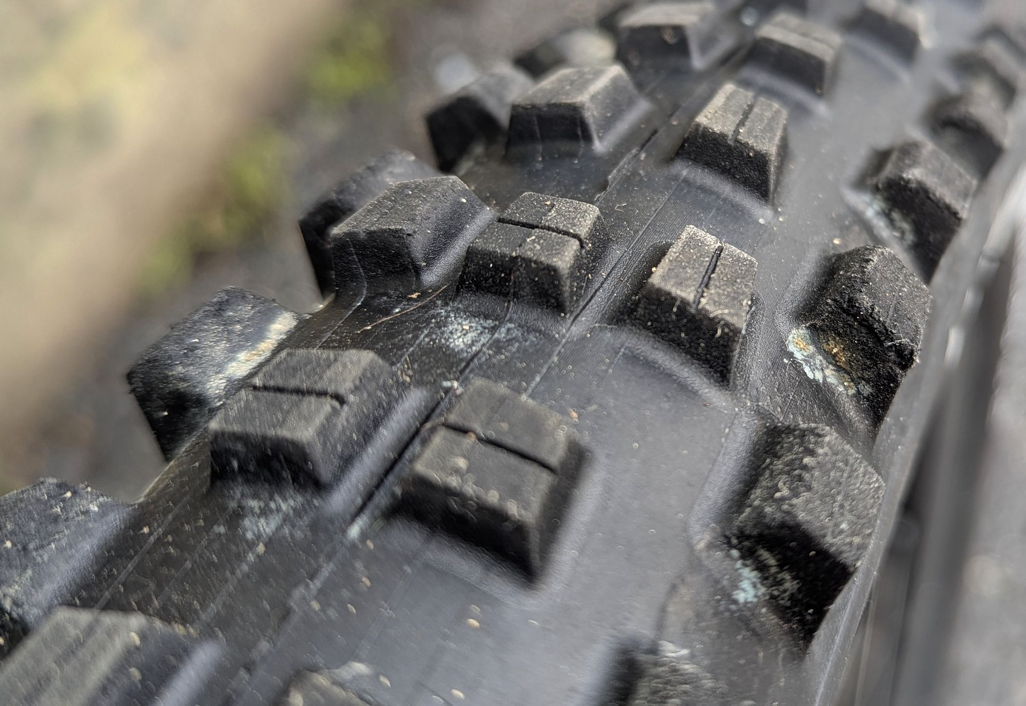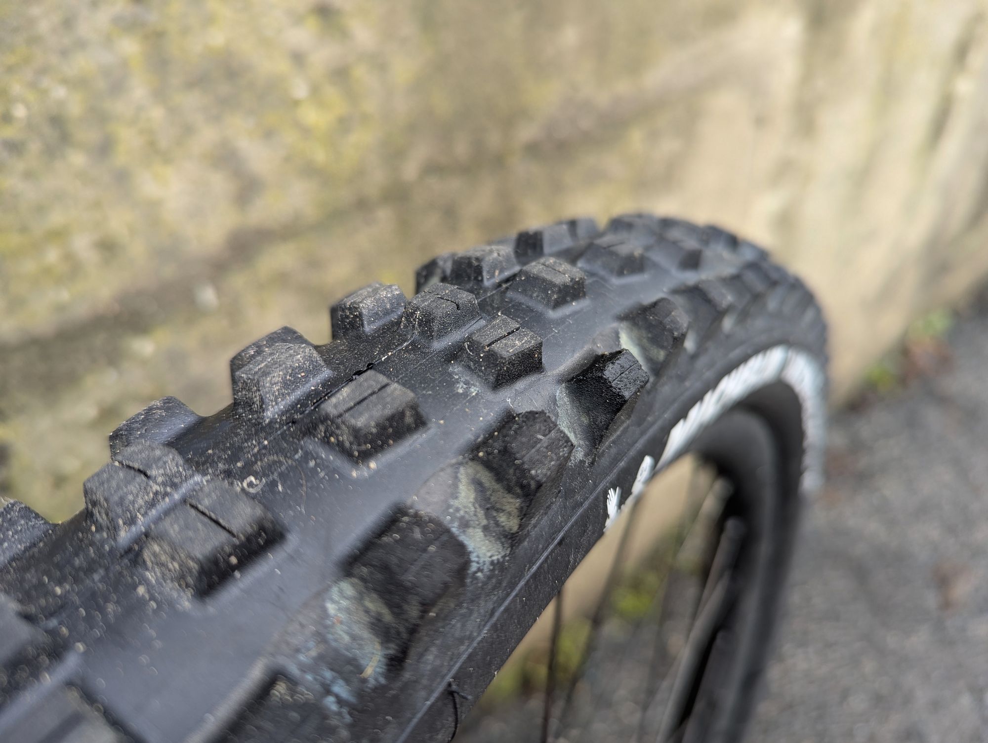 Pět dní shuttlování a ježdění se zde dost zásadně podepíše na životnosti. Obvykle platí, jeden výlet stojí jedny pláště. Performance Line slibuje větší výdrž a není to jen slib, je to realita. Ostatně posuďte sami. Za mě velmi dobrý výsledek, pláště budou sloužit ještě spousty kilometrů. Na obou pláštích je patrné větší opotřebeních bočních výstupků, ale nikde na pláštích jsem neobjevil jakýkoliv náznak poškození typu stržené hrany, odtržení figury od základu či cokoliv podobného.