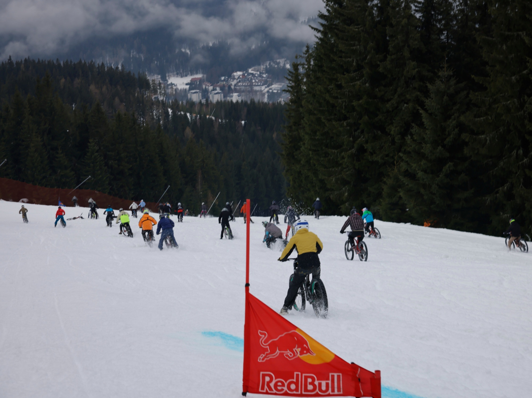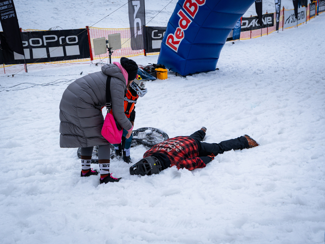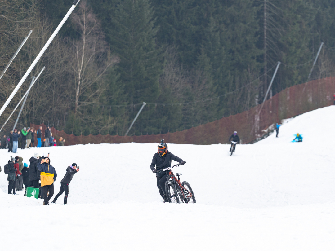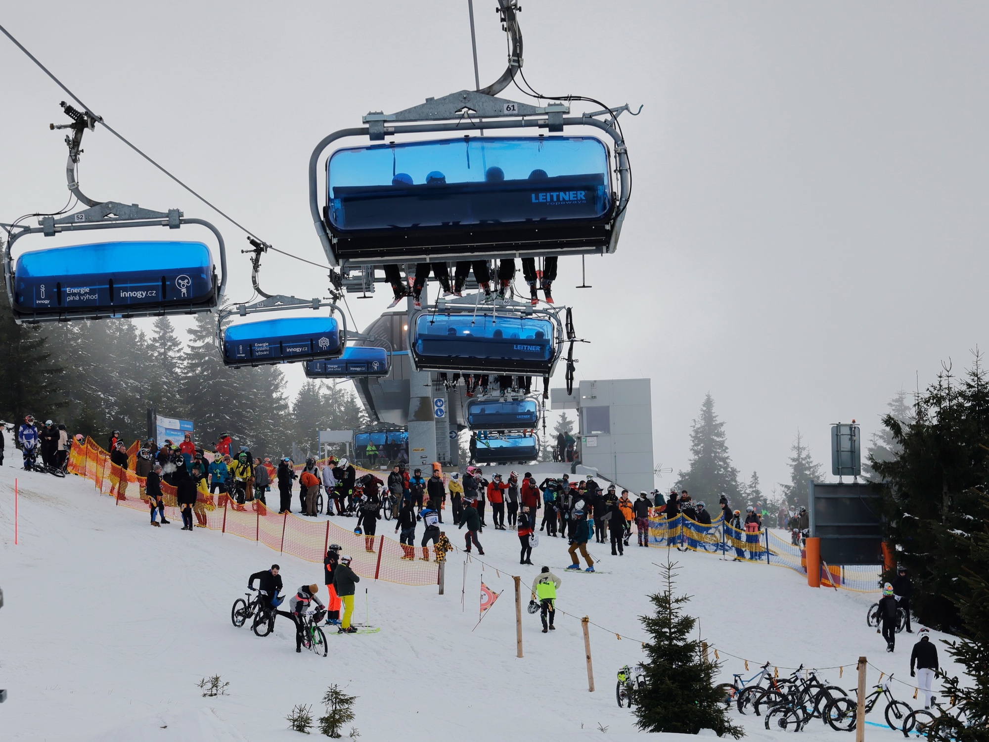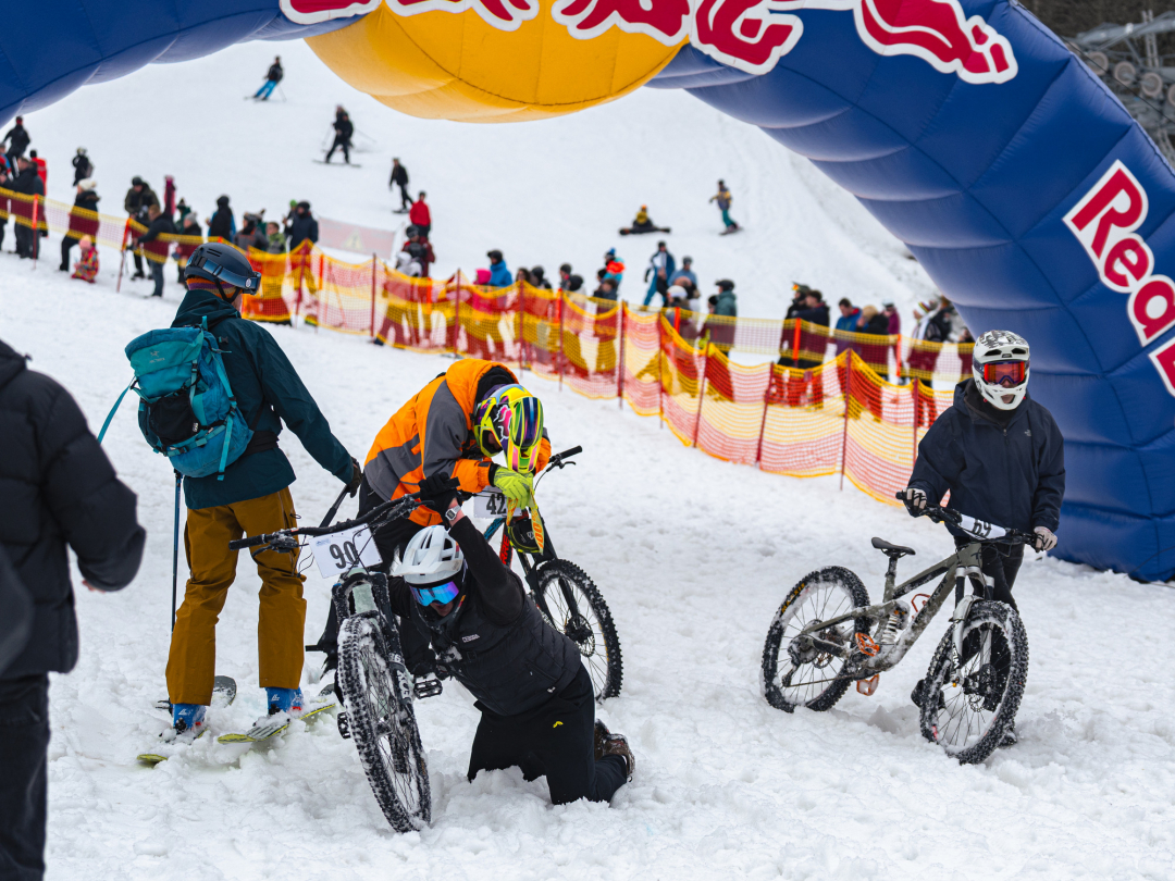 Od startu bylo jasné, že nás čeká nelítostný boj! Hromadný běh v rozbředlém sněhu byl delší než obvykle. Nasednout na kolo a udržet stopu byl nadlidský výkon. S přívalem jízd se ze sjezdovky stalo oraniště bez příkras. Hromadné pády se kumulovaly v srdci Krkonoš jako hrušky na kompostu. Občas tento cirkus připomínal cyklokrosové klání v těch nejhorších možných podmínkách. Na dvoukilometrové trati nebyl výjimkou čas okolo 10 minut (loňský průměrný čas byl 4 min.), do cílového prostoru se muselo dobíhat. Za cílovou páskou to mnohdy vypadalo jako po dokončení závodu Ironmana. Závodníci popadali dech vleže, kolikrát i s hlavou zabořenou do roztátého sněhu.