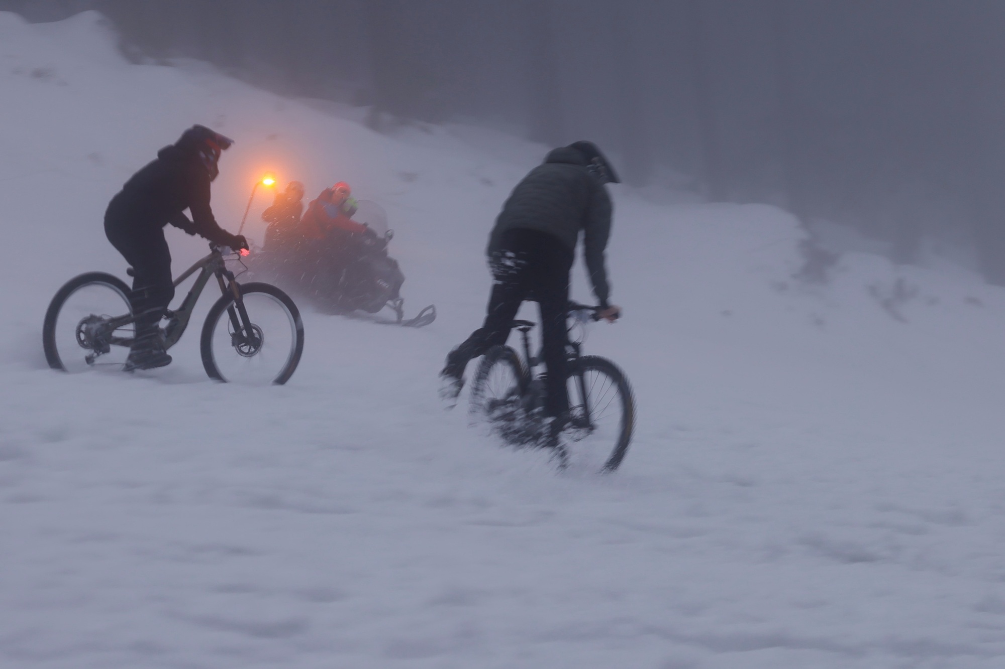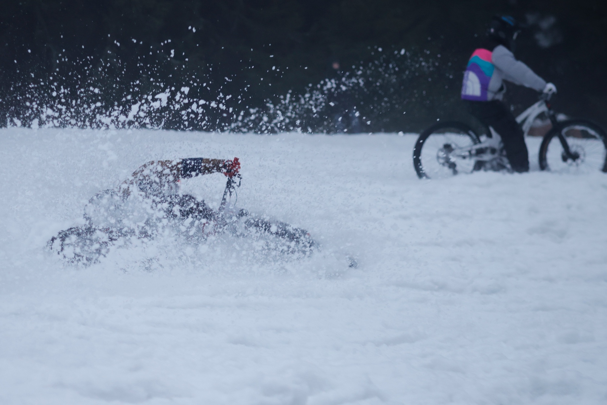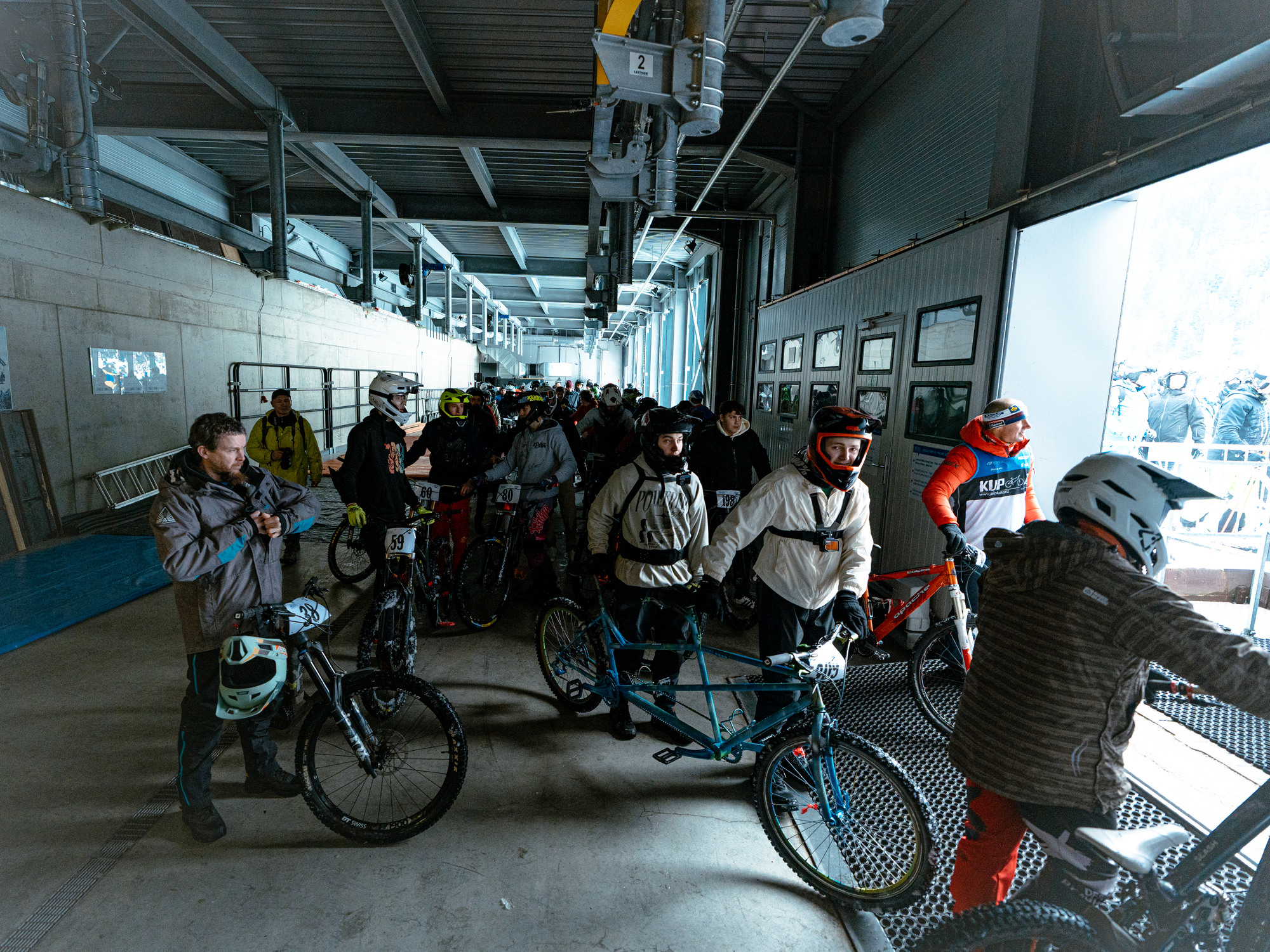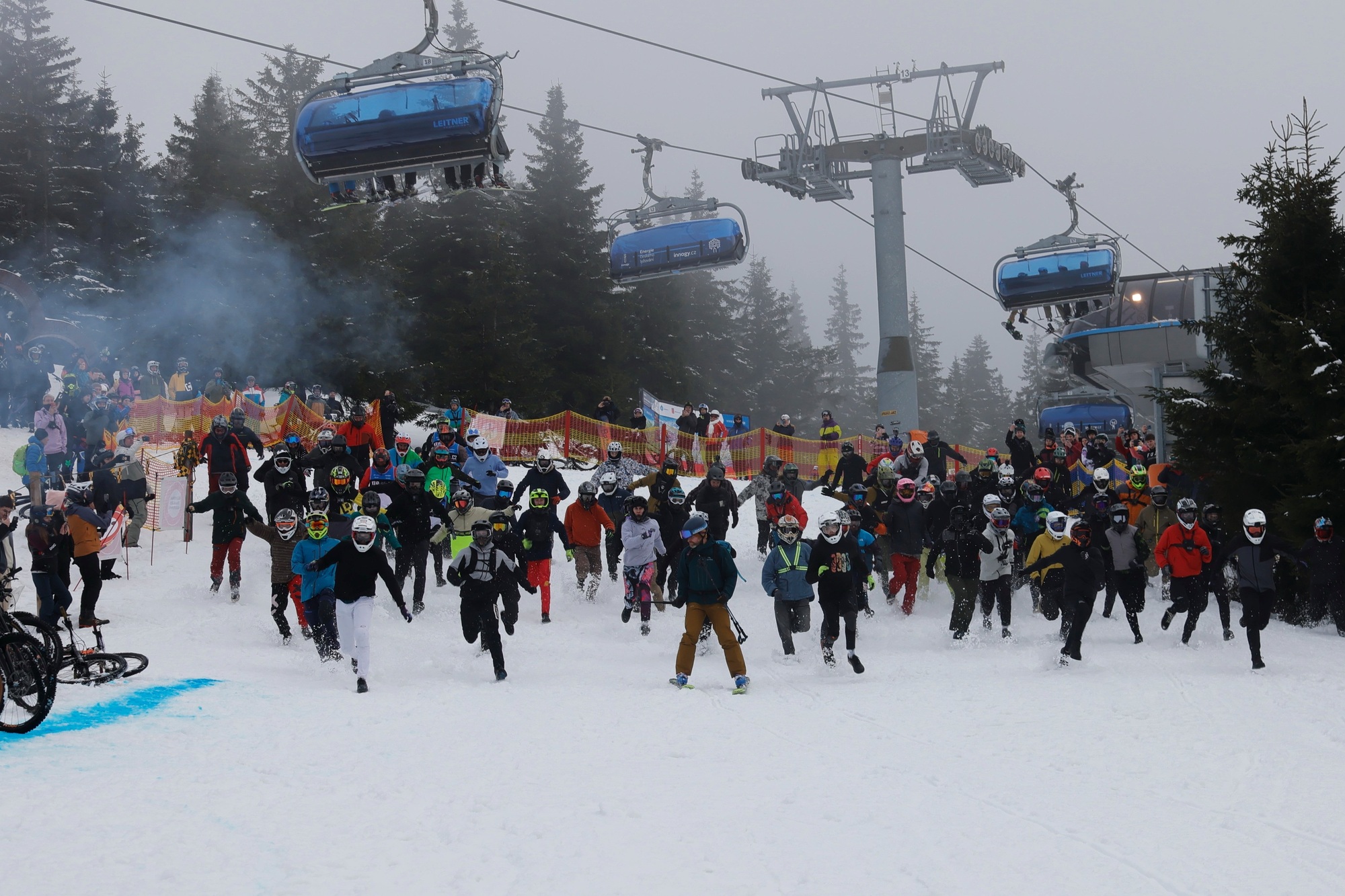 Od startu bylo jasné, že nás čeká nelítostný boj! Hromadný běh v rozbředlém sněhu byl delší než obvykle. Nasednout na kolo a udržet stopu byl nadlidský výkon. S přívalem jízd se ze sjezdovky stalo oraniště bez příkras. Hromadné pády se kumulovaly v srdci Krkonoš jako hrušky na kompostu. Občas tento cirkus připomínal cyklokrosové klání v těch nejhorších možných podmínkách. Na dvoukilometrové trati nebyl výjimkou čas okolo 10 minut (loňský průměrný čas byl 4 min.), do cílového prostoru se muselo dobíhat. Za cílovou páskou to mnohdy vypadalo jako po dokončení závodu Ironmana. Závodníci popadali dech vleže, kolikrát i s hlavou zabořenou do roztátého sněhu.