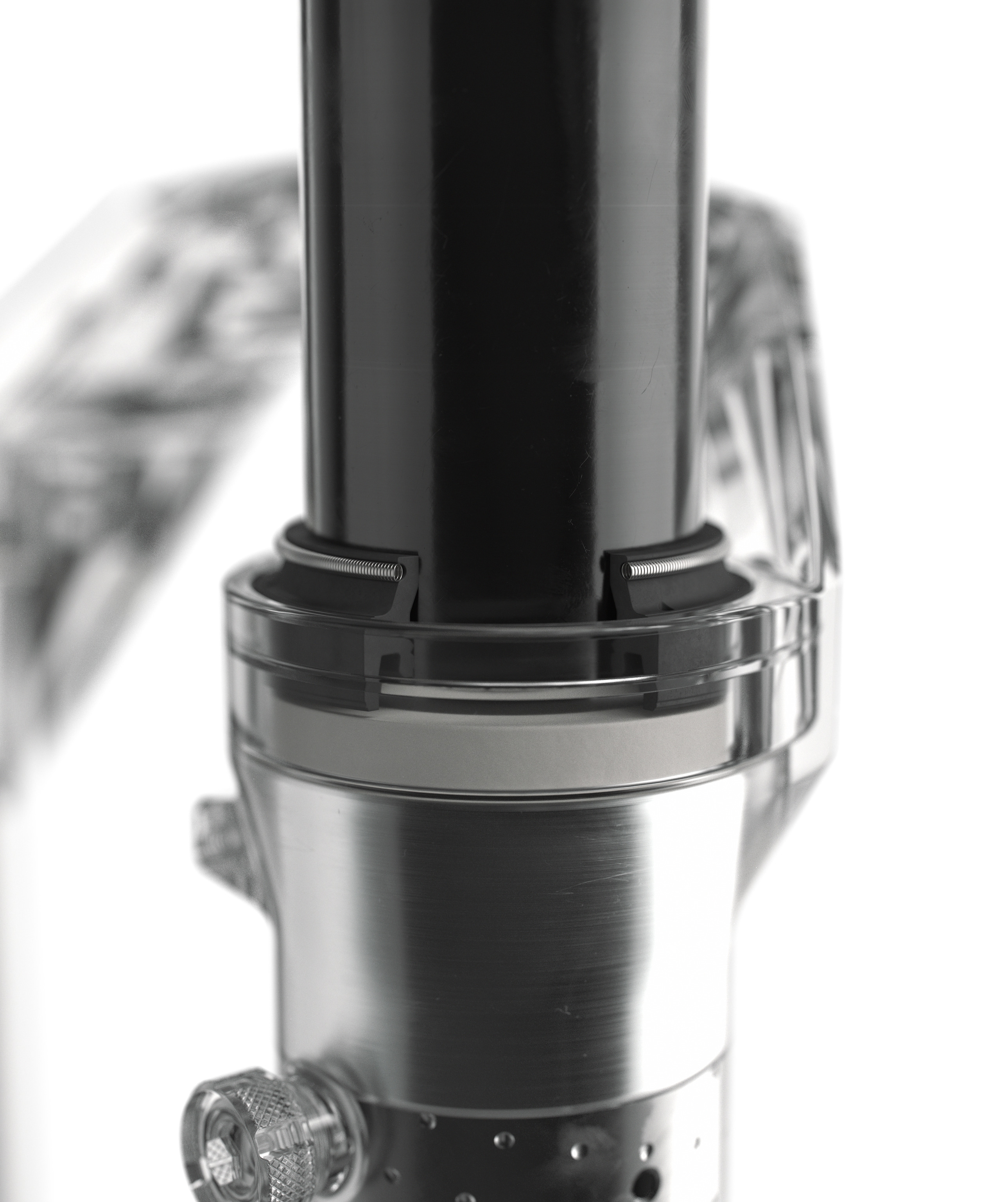 Zajímavým detailem jsou otvory ve vnitřních nohách, které umožňují zvětšení objemu vzduchu ve spodních nohách během chodu vidlice. Proč? Pro snížení odtrhové síly a zvýšení citlivosti v celém rozsahu zdvihu.