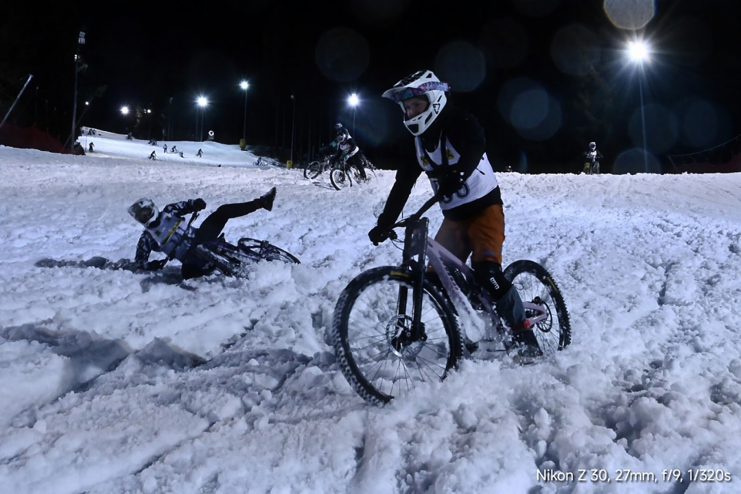 MTB závody na sněhu jsou ve své podstatě docela hloupé a není to závodění v pravém slova smyslu. Každopádně adrenalin a situace, které se během nich při hromadných startech stanou tuhle nesmyslnost překonávají. A sníh nekouše tolik jako hlína.