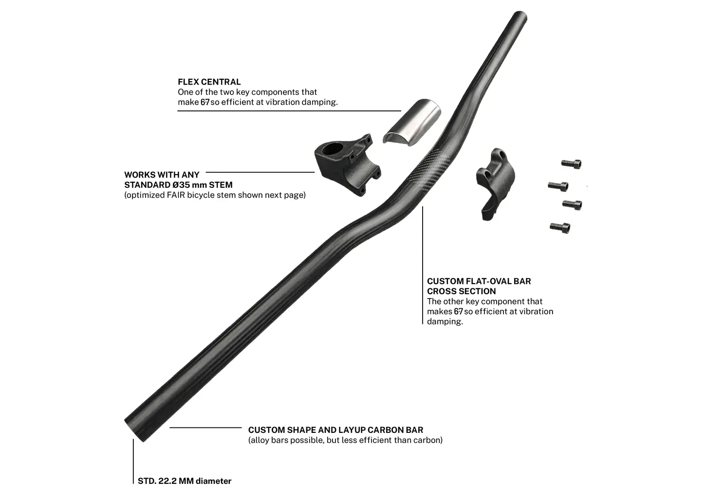 Švýcarská společnost FAIR přichází se systémem, který slibuje to nejlepší z obou průměrů řídítek: o 50 % vyšší pružnost ve svislém směru (vertical compliance) než u 31,8 mm při zachování tuhosti v horizontálním směru jako u průměru 35 mm.