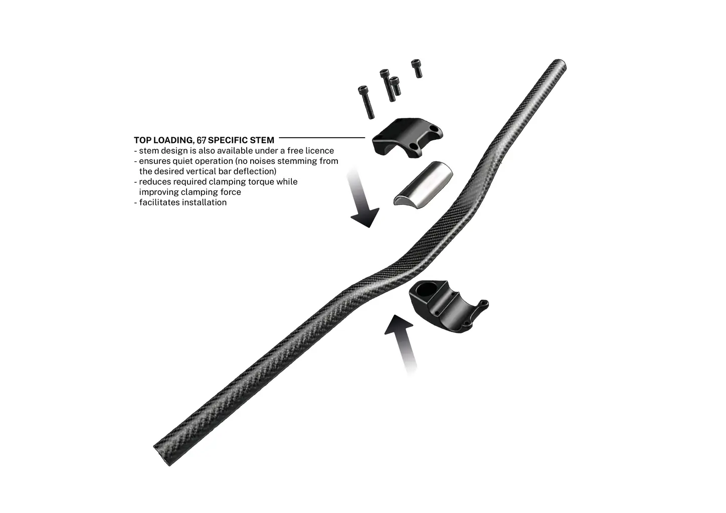 Vložka svým půlkulatým průřezem doplní půlkulatá řídítka, takže ve výsledku vznikne kruhový průřez, který lze bez problémů upnout do jakéhokoliv představce.