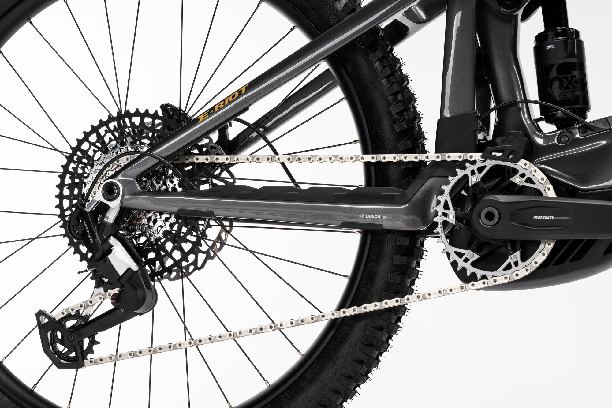 V samém středu nabídky model E-RIOT Full Party (Doporučená maloobchodní cena od 9 500 eur) definuje charakter této platformy. Je postaven pro agresivní jízdu a progresivní linie, jeho výbava SRAM a RockShox je vyladěna pro hravý, na gravitaci zaměřený pocit, který jezdce povzbuzuje k tvrdší jízdě a kreativitě na trailu. Je to kolo pro ty, kteří v každém sjezdu vidí příležitost.