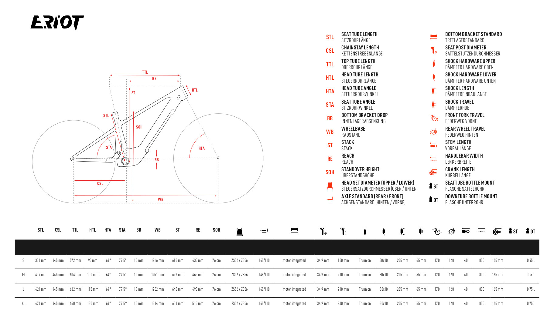 Se zdvihem 170 mm vpředu a 160 mm vzadu, nastavením kol mullet a maximální nosností systému 150 kg je E-RIOT stvořen pro náročné podmínky. Systém odpružení TractionLink 2.0 zajišťuje stálou přilnavost a kontrolu, a to i když jsou traily nevyzpytatelné. Výsledkem je sebevědomá jízda, která povzbuzuje k posouvání limitů, ať už v technických sjezdech nebo v náročných stoupáních.