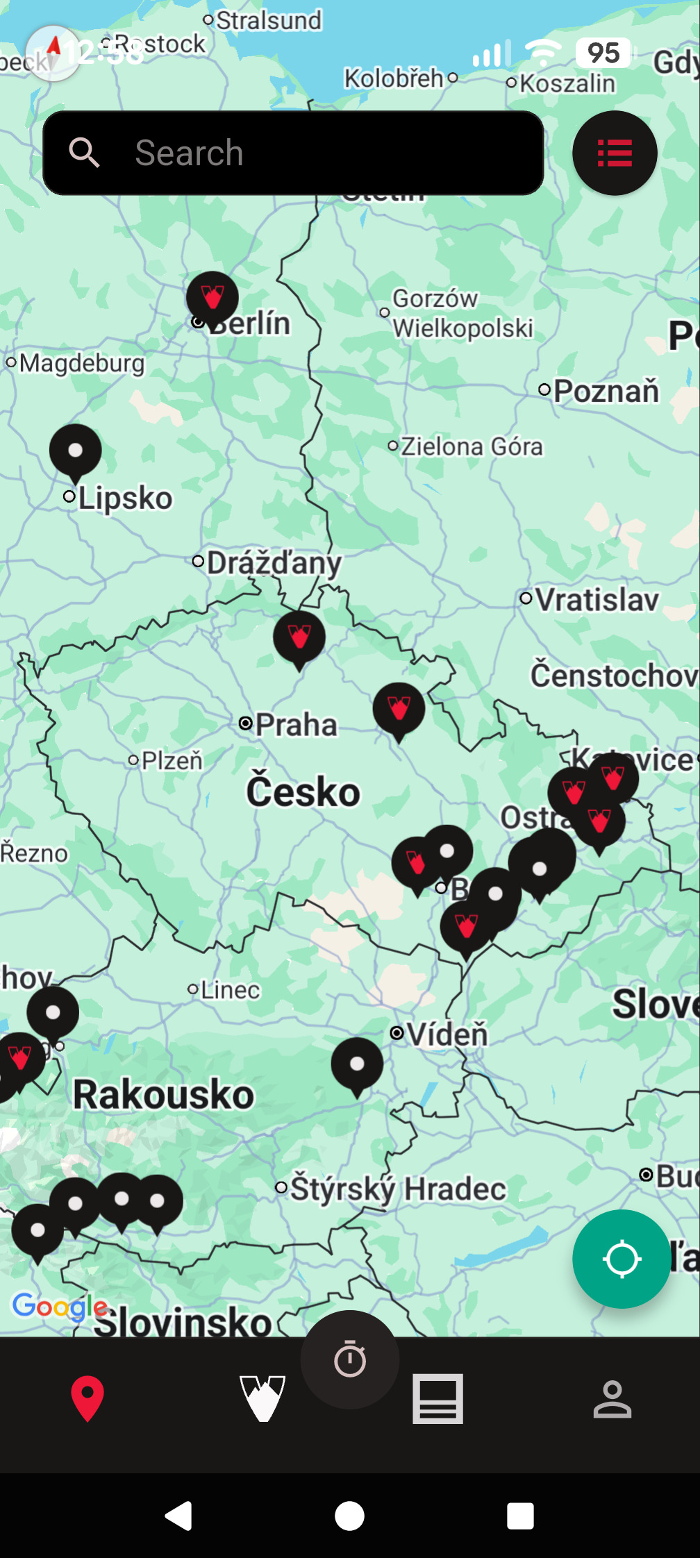V aplikaci najdete také mapu všech pumptracků Velosolutions, ty které umožňují měření jsou označeny logem firmy.