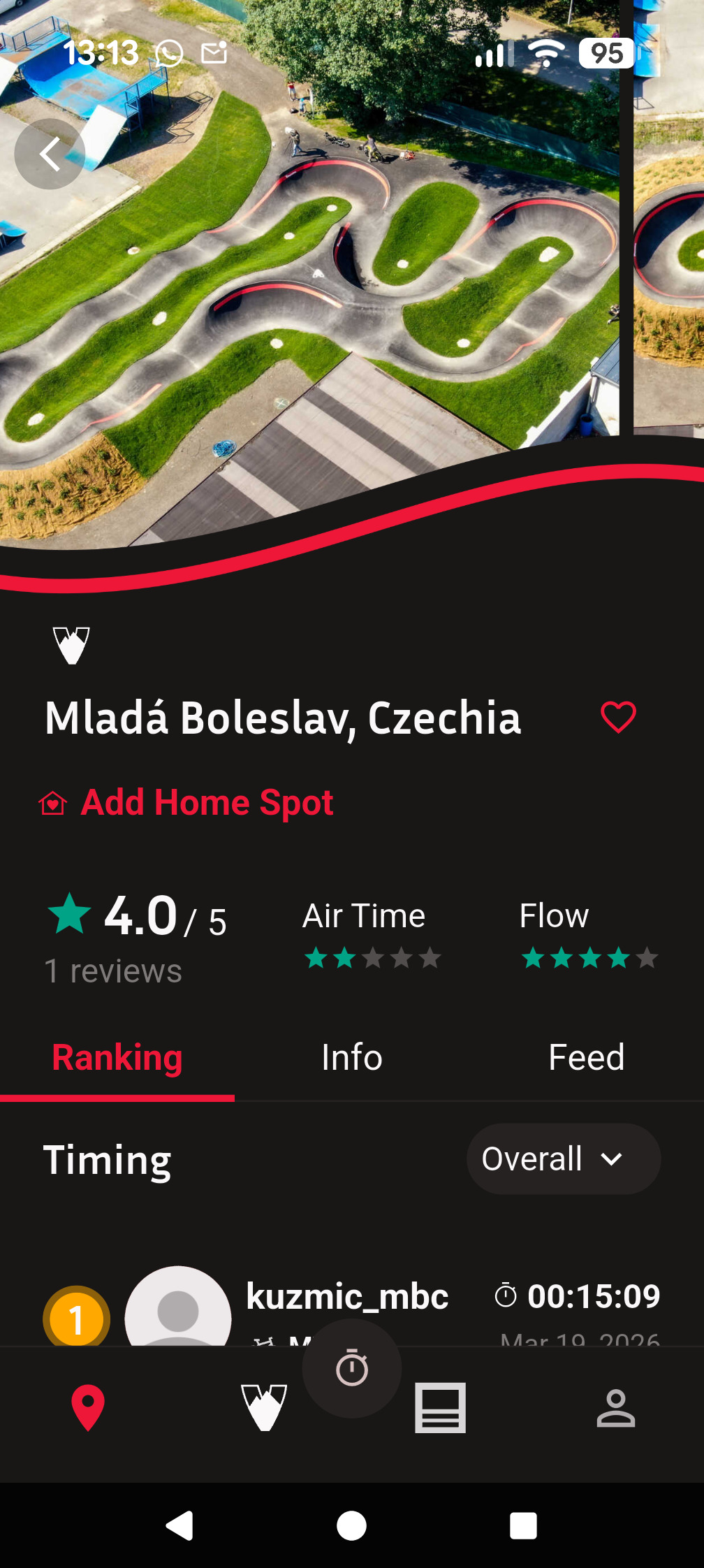 Použití je jednoduché: najdeš nejbližší aktivovaný pumptrack, spustíš aplikaci a jedeš. Čas se spustí automaticky při přejezdu startovní čáry, každé kolo se zaznamená a po jízdě máš okamžitě k dispozici přehled výkonu i aktuální pozici v žebříčku.