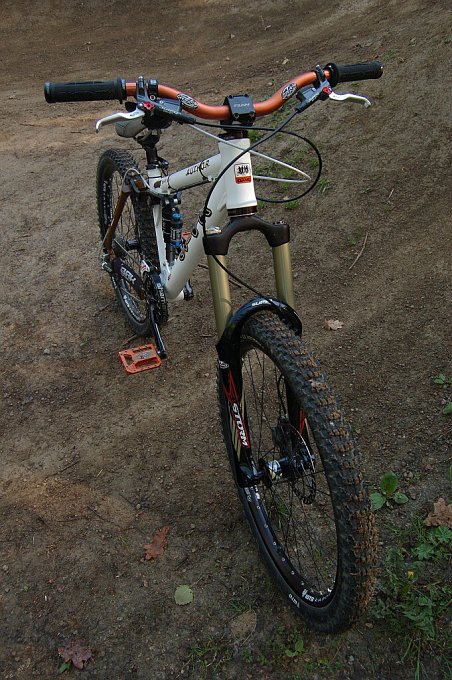 Jinak jsem si kolo upravil k obrazu svému od volby velikosti S, až po výběr komponentů tak, aby nebyly nejtěžší, ale přitom dost vydržely. Tím se dobře zjistí, co vydrží samotný rám a vidle. Po pár měsících ježdění jsem hodně spokojený s reakcí zadní stavby na šlapání i pod bržděním. Kolo má okolo 17 kg včetně pedálů, díky tomu je na freeridu i ve vzduchu hravé, dobře točí a perfektně se ovládá.