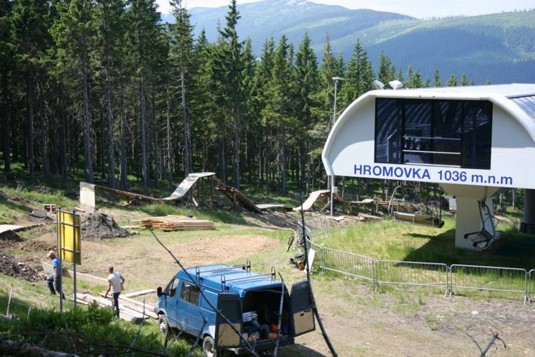 nový bike trail. Od horní stanice Hromovky se lemuje nově vybudovaný trail
