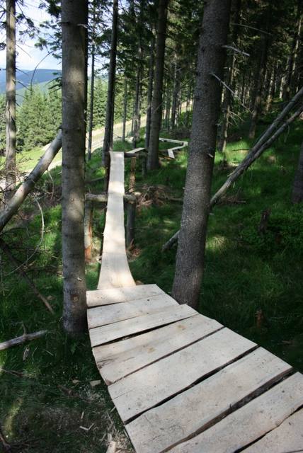 lávkový trail a tímto pak pokračovat až pod nejtechničtější pasáž ve