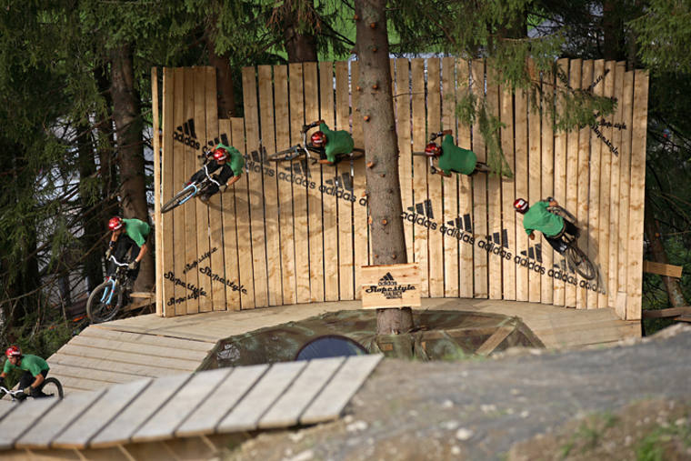 Zde bych se trochu pozastavil nad tratí, kterou měli letos na starosti členové teamu adiridas – Joscha Forstreuter, Niels Peter Jensen a Niki Leitner. Bez debat stoprocentní technická dokonalost dávala celému dílu jedinečnou tvář. Ovšem směr, kterým se tenhle závod ubírá, se vzdaluje podstatě disciplíny, ze které sám vzešel. Jednoduše řečeno, ONE BIG PARK závodu adidas Slopestyle 2008 už není o freeridu. Zvolit si vlastní lajnu a nějak se odlišit od ostatních bylo takřka nemožné. Lišit se šlo pouze extrémními triky, kterých na druhou stranu padalo požehnaně. Toliko tedy k trati, která i přes tuto malou výtku vzbuzovala megalomanské pocity a snad všem návštěvníkům tlačila brady směrem k nohám.