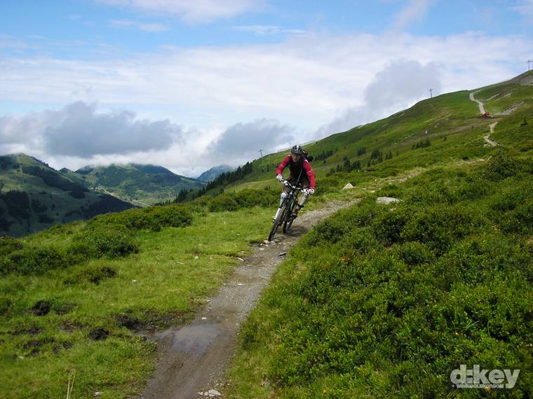 Pokud začínáte jako my v Leogangu, musíte si dát pozor na to, abyste stihli poslední výjezd lanovky Kohlmais Bergbahn (v 16:30), která Vás vyveze zpět na hřeben vedoucí krásným singlem k vrcholové stanici nad bikeparkem Leogang.