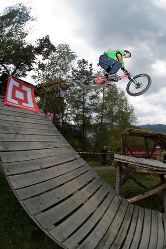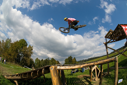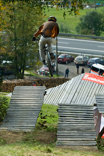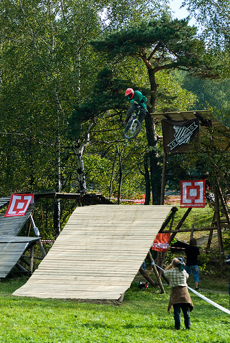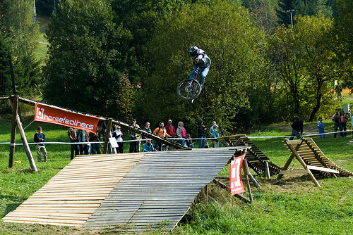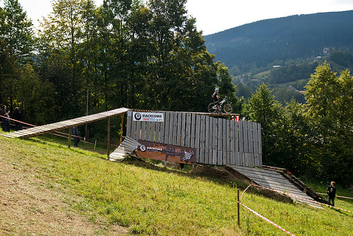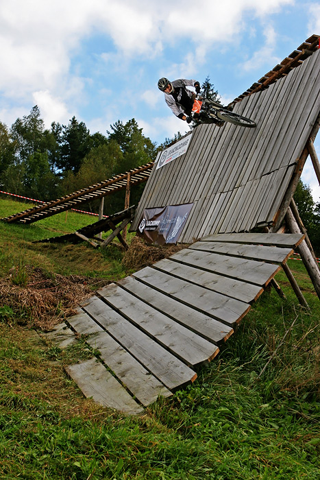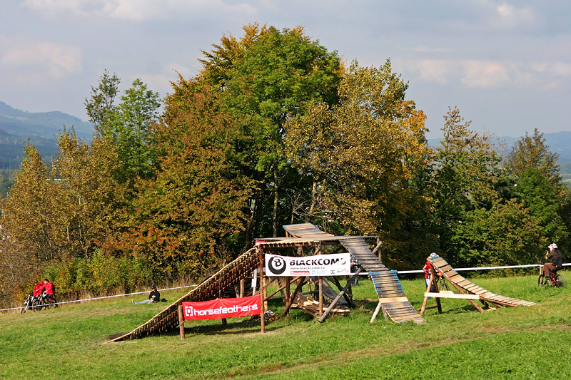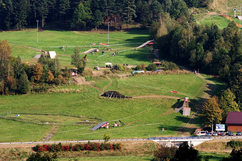 Všichni aktéři, na svých letajících strojích měli stejnou výchozí pozici. Ihned po překonání posiláku, nevelkých rozměrů, si mohli přítomní vybrat, dle svých ambicí. Trať se větvila na čtyři lajny. Ta nejzajímavější začínala pořádným „masomlejnem“, záludných rozměrů. Jednalo se o steep up to steep down. Přičemž letci naskakovali na lavici, končící šest metrů nad zemí a do dopadu, to pánové měli poctivých sedm m. Po úspěšném „lendingu“ , čekal na trati sedmi m, dřevěný dvoják. Z něj vedly dvě stopy na multifunkční funnbox. Ten se dal skákat over z pravého odpalu, nebo využít jako lehčí steep up to steep down. Jestliže ani tady borci nežrali hlínu, měli namířeno na čtveřici gapů, různých rozměrů(od 10ti, po 5m dlouhý polet). Na promáčeném dopadu, jako by tam místní sedláci orali, začínal pravý motocross. Lehce přibrzdit, ostrá levá (3g v hlavě;), podpořená dřevěnou klopkou a najednou se objevil jeden z nejkrásnějších panoramatických výhledů na Jablunkovský průsmyk. Ovšem končící čtyř m dropem. To byla jedna z variant průjezdů téhle překážky. Taky se dalo sklouznout po wallride, přímo na sérku MX odpalů, šopnutých pět a deset m od dopadu. V parku též vznikla zbrusu nová Izzy line (jak už název napovídá, je to lajnička pro méně zdatné jezdce, vznikající za mocné podpory rifu metalového mága Ozzy Osbourne) a sekce ve stylu nort shore lávek. Projektování se ujal opravdový znalec Marian Sekula, a tak si místy připadáte, opravdu jako BC. Jelikož akce nebyla pojata jako závod, ale jakýsi happening, mohl si každý vybrat svůj level.