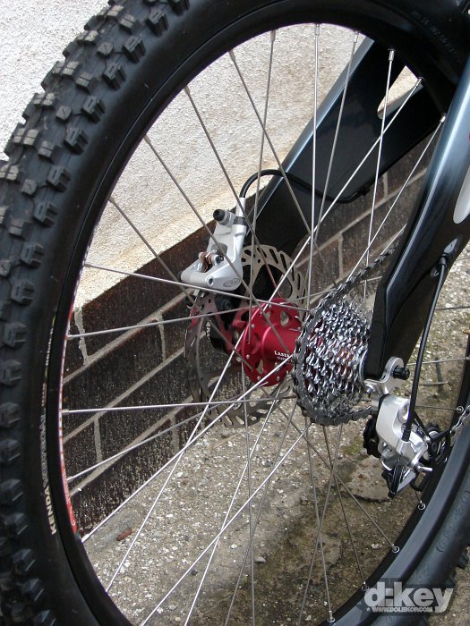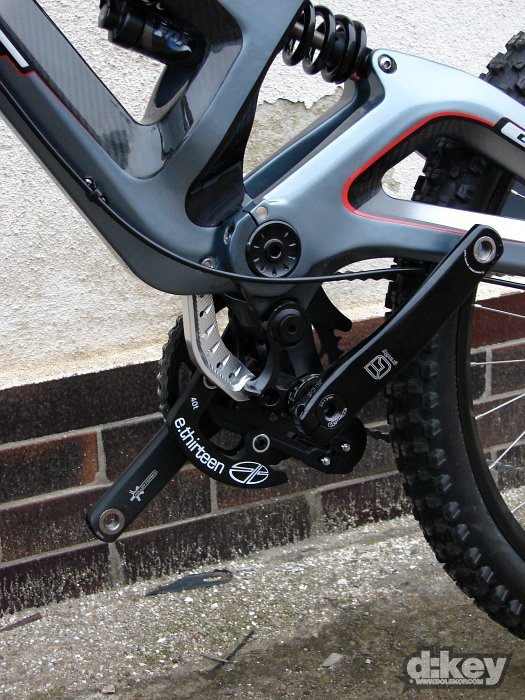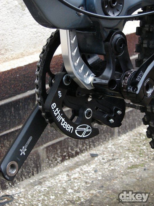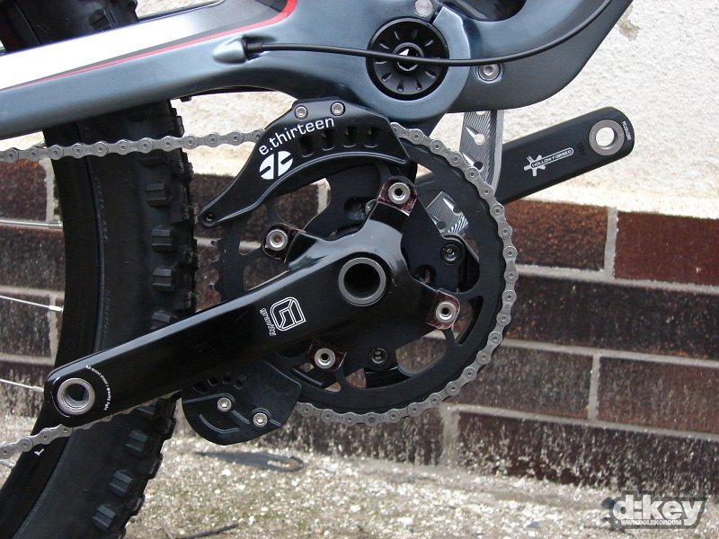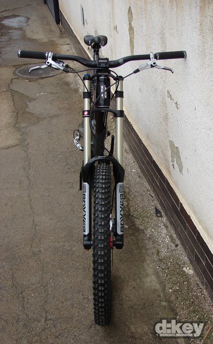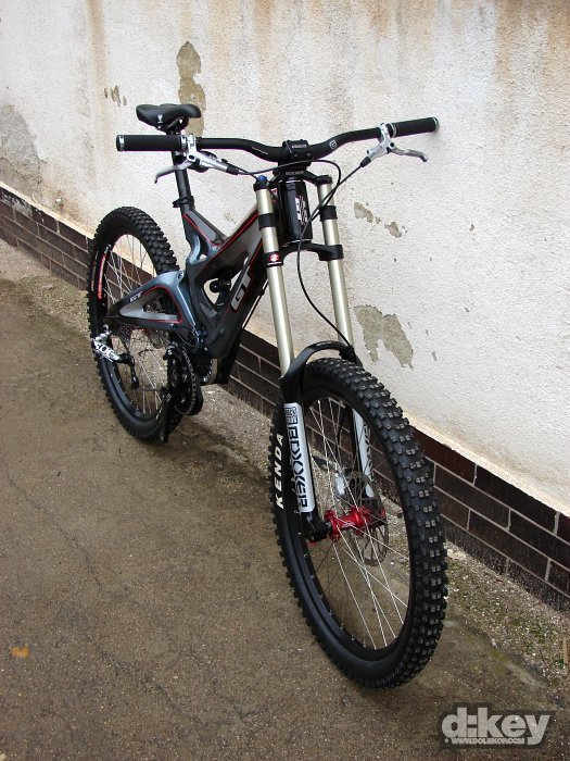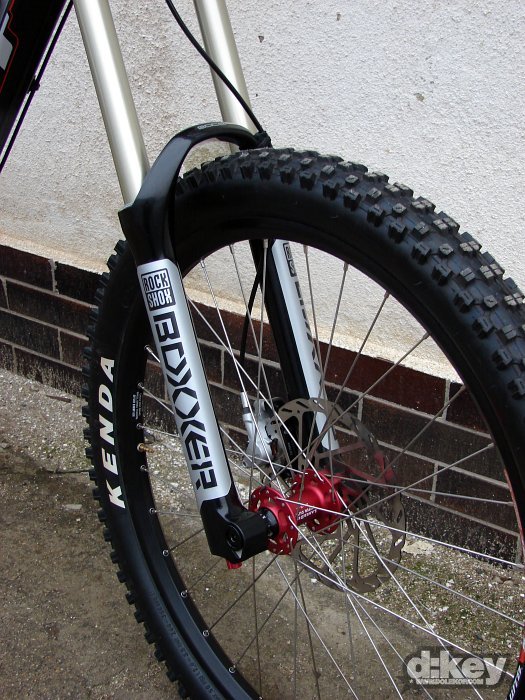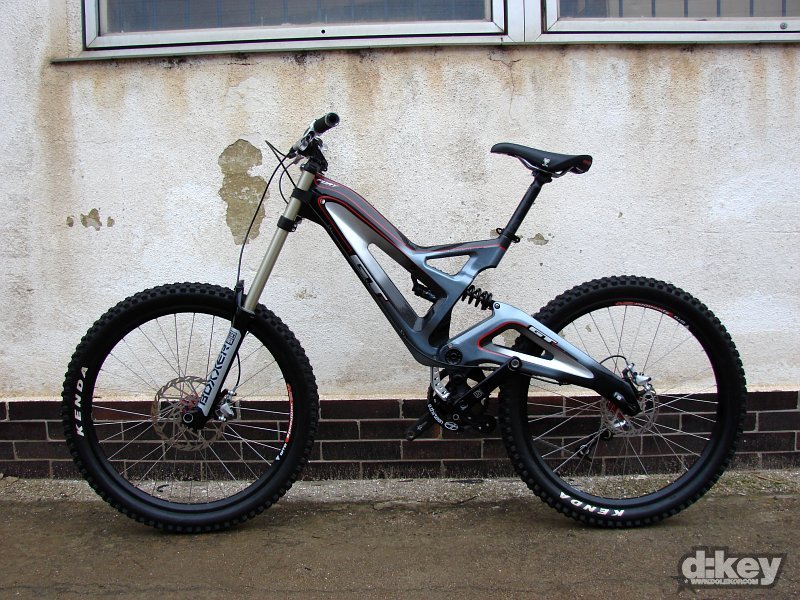 Focené kolo bylo osazeno vidlicí RockShox Boxxer Race, tlumičem od Foxe, hlavovkou FSA Orbit OnePointFive průměru, řazení má na starosti SRAM X.9, kola dodalo WTB, model LaserDisc Super Duty (zadní osa Maxle 150mm), pláště Kenda Nevegal 26×2.5, kliky FSA Gravity řetěz na převodníku drží napínák od e.thirteen.
