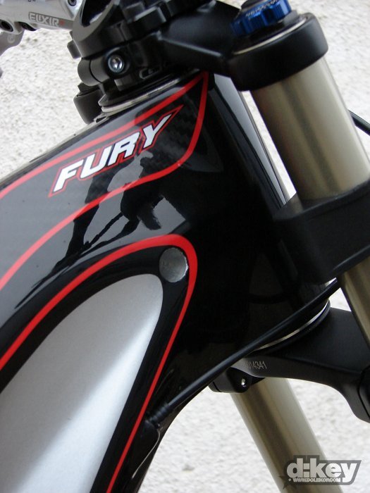 GT Fury 2009 aneb karbon kam se podíváš. Chytré hlavy u GT si karbon nevybraly náhodou, je obecně známé, že karbon má zhruba desitinásobný poměr pevnost/váha ve srovnání s hliníkem a tak se dají stavět z karbonu velice lehké rámy s srovnatelnou pevností jako u hliníkových slitin. Avšak u Fury je to jinak, kolo je postaveno na karbonu ne kvůli váze, ale především kvůli pevnosti. Takže nečekejte ultralehké kolo.