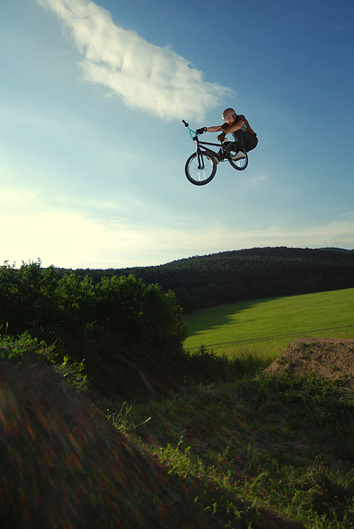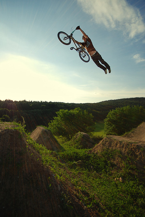 vzduchem z kopečku na kopeček. Po čase jsem přidal nějaký triky a