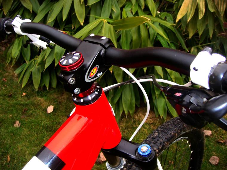 Oproti minulým rokům jsem sáhnul po širších řidítkách a to Easton Havoc DH (711mm x 25,4mm). Kolo se tak stalo o hodně klidnější a celkově se lépe a citlivěji ovládá.