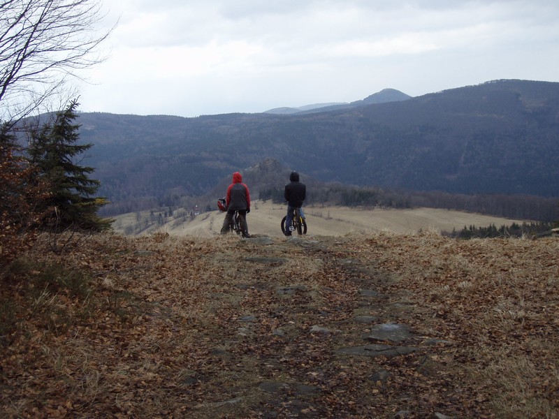 Vršek tratě vede po sjezdovce, která je dost kamenitá a jedná se