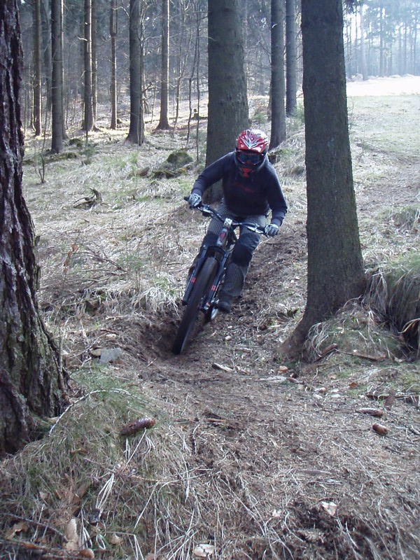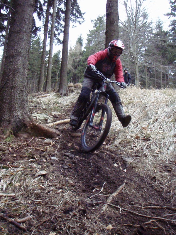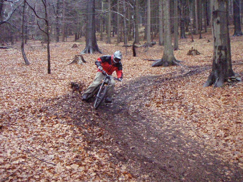 dále trať vede po hraně sjezdovky kořeny sem tam kameny menší wolride