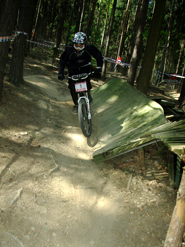 Z 31. přihlášených můžů kategorie open zvládl nejrychleji 1. trať s těsným rozdílem 31 setin s časem 00:53,54 Jirka Gergel před Martinem Hoferkem a Majklem Červenkou. V juniorech kraloval po první jízdě z 31. přihlášených Hany s časem 00:54,88 před Martinem Daňkem a třetím Martinem Slovákem. Naděje do 15. let ovládl i po pádu znojemskej Zuhlin. Ženy vyhrála překvapivě jediná zástupkyně, Terry Hot.