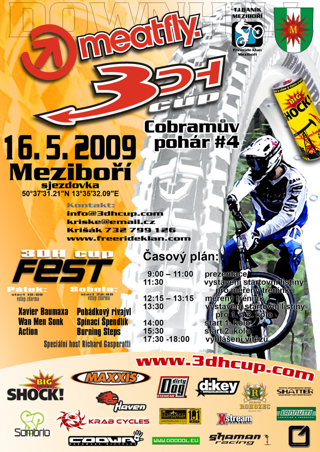 A teď k trati: Moc se nezměnilo, trať je tažená malinko jinudy a je trochu delší…asi vše. V pátek se začne točit vlek mezi 15–16:00hod, cena za vlek – pátek 100Kč, sobota 100Kč. Pro letošní rok je stanoveno startovné na 150Kč (junioři, ženy, kadeti) a 200Kč (full, hardtail) + 50,– vratná záloha na číslo.