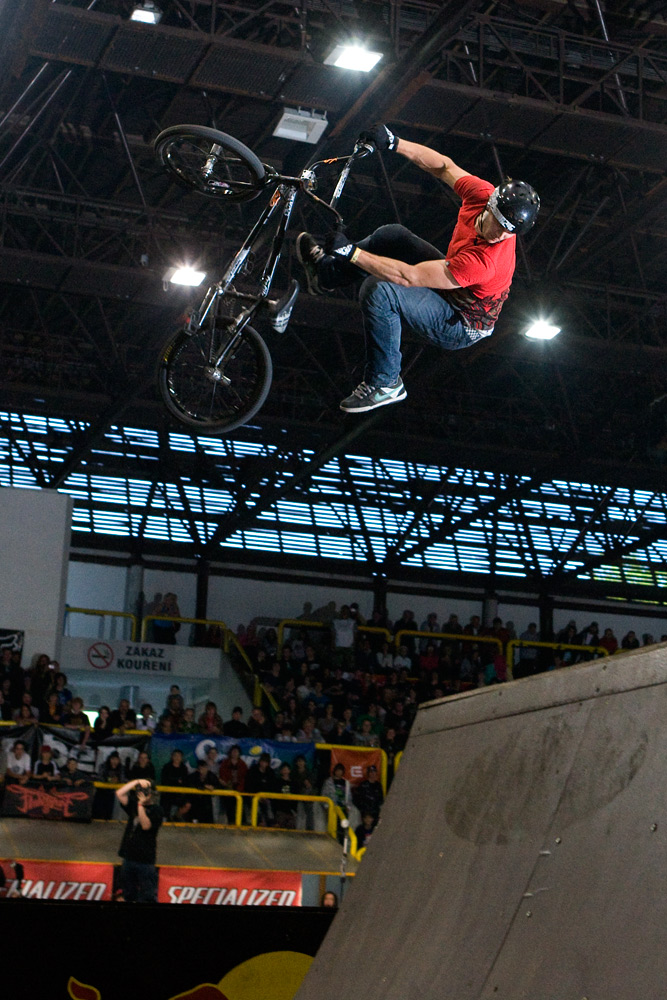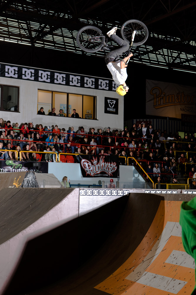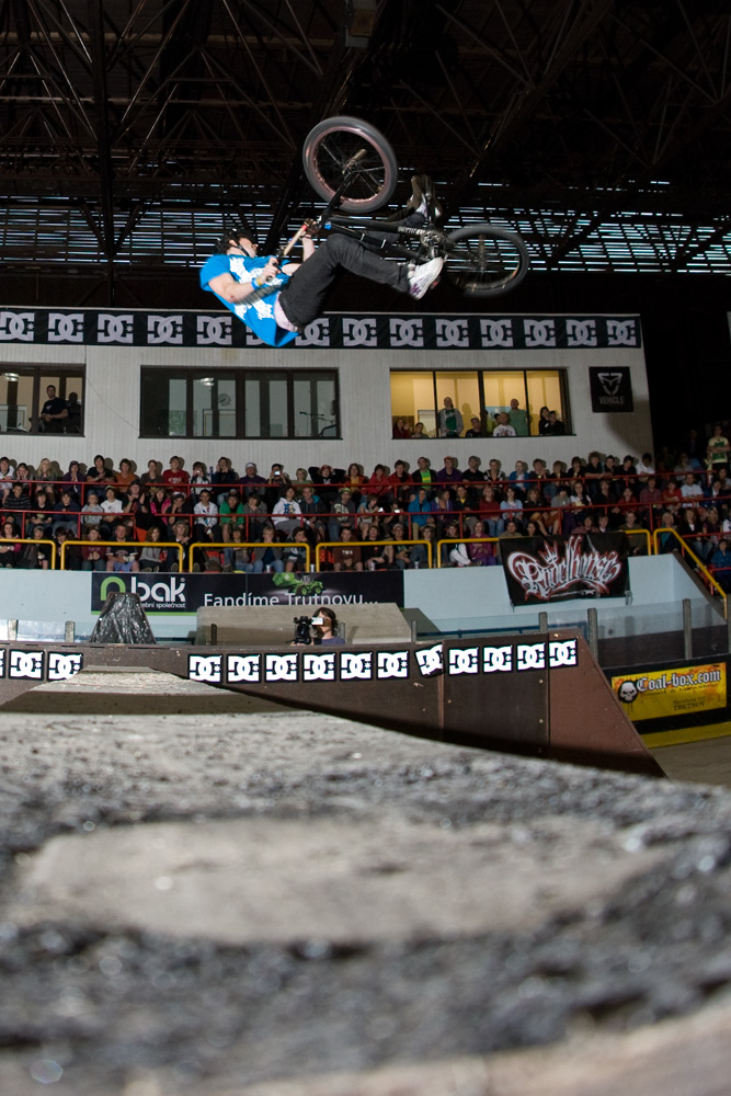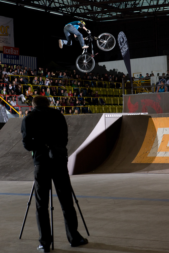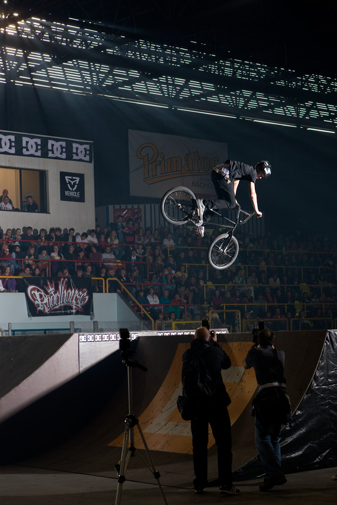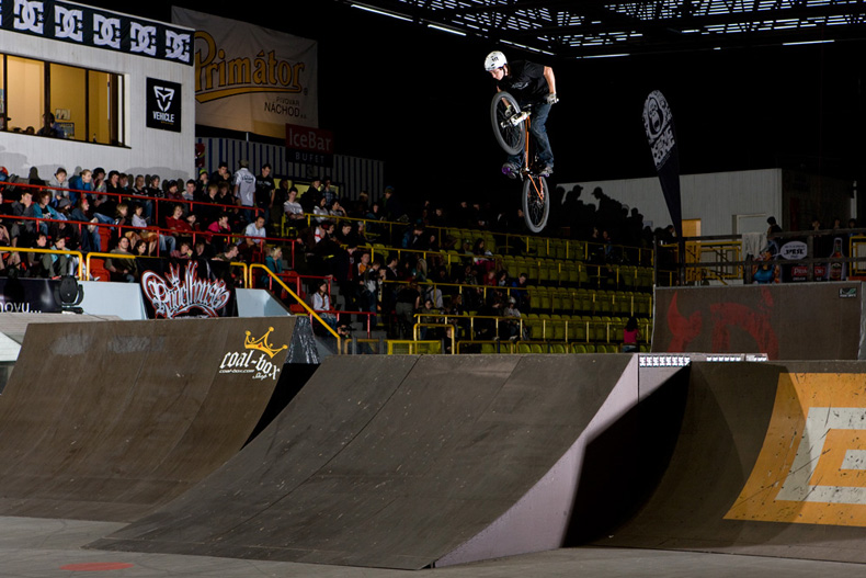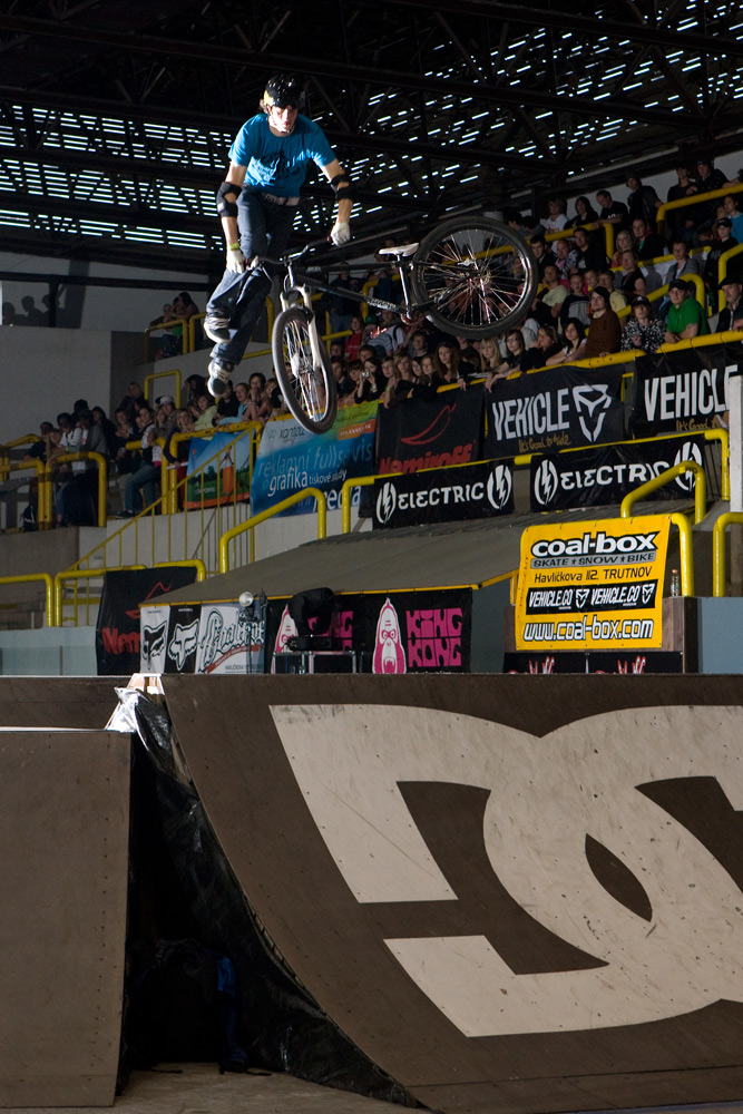 Nicméně vraťme se z euforického Řáholce zpět do Trutnova na finále BMX elite. To odstartoval ohňostroj, který spíš celou halu zahalil do mlhy, než by měl nějaký další ohromující efekt. Ze všech riderů bych zmínil mladého Pouziho, který i přes svůj věk (15 let), zkušenosti a skills zajel i protřelé BMX stars. Jeho jízdy plné byť „lehčích“ triků vzbudili pozornost většiny bikerů i diváků. A co je třeba dodat je také fakt, že Pouzi jezdí brakeless! Za dvanácté místo mu tak patří hodně velký respekt!