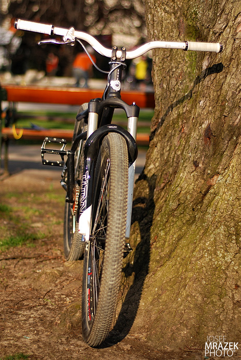 Jelikož na kole víc skáču než sedím, tak mám malinkatý jen aby se dalo