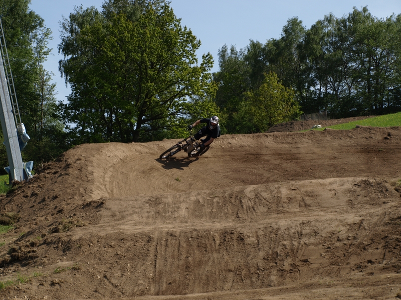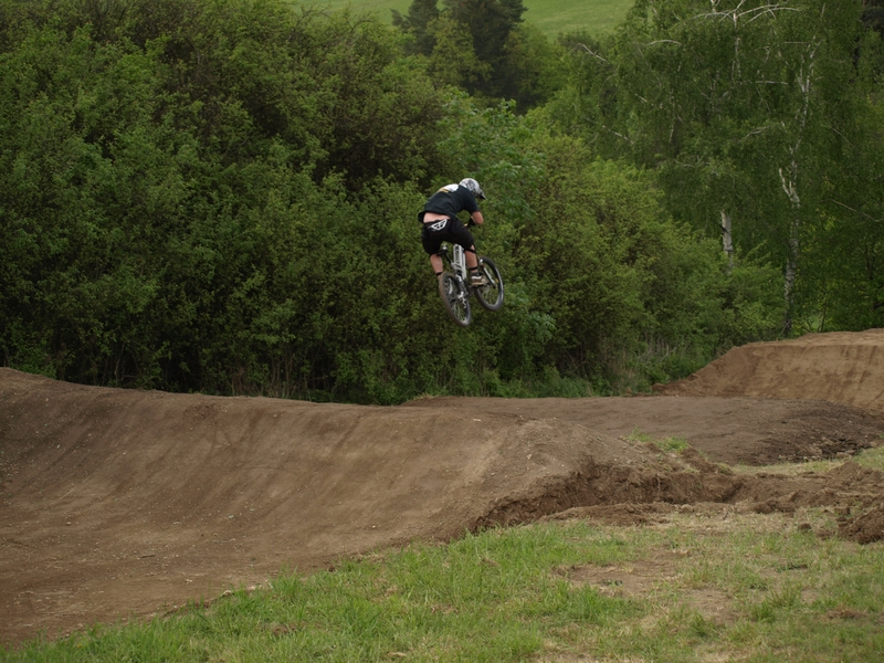 V těchto dnech se nám podařilo vybagřit a nalopatit trať, která je 250 m dlouhá, 5m široká a skládá se ze skoků, které na sebe plynule navazují. Rychlost se zvětšuje a spolu s ní i délka skoků.