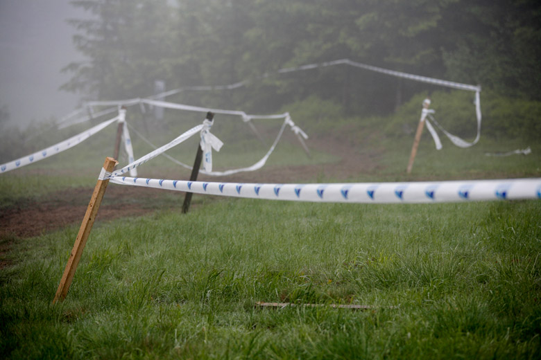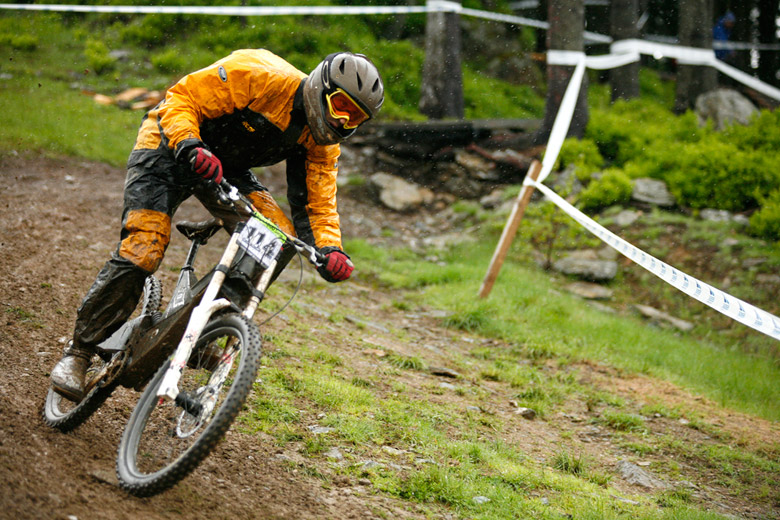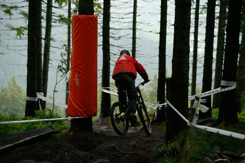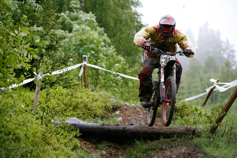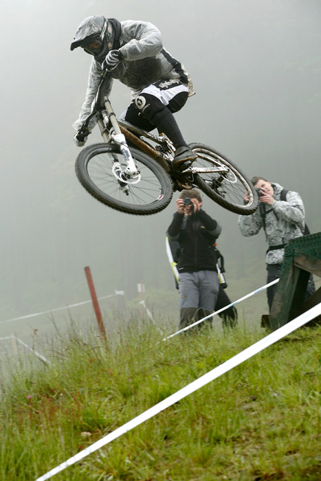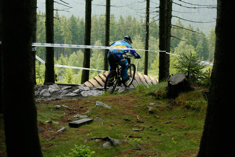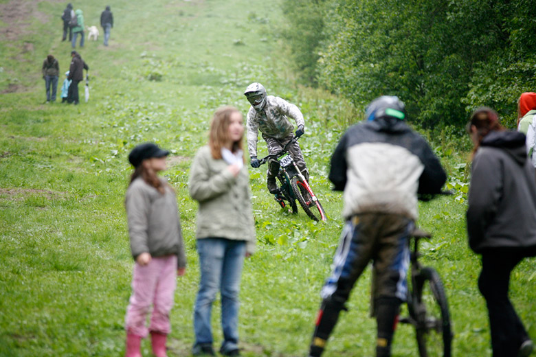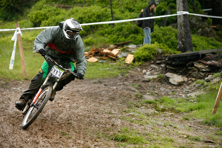 Neděle – Slopestyle, který se měl jet v sobotu, byl nejdřív z pochopitelných důvodů přesunut na neděli, ale ani to nakonec nebylo nic platné a celý závod musel být zrušen, i když třeba takový Netro na něj netrpělivě čekal celý víkend. Nakonec si ale spravil chuť, když kdesi ukořistil sjezdové kolo, které jeho poctivých sto kilo dokázalo bezpečně svézt dolů. Škoda jen, že Netrovi půjčené kolo nedovolilo změřit síli s ostaními sjezdaři. Další dirtař Žena se nakonec do sjezdového závodu pustil a skončil na parádním 43. místě.