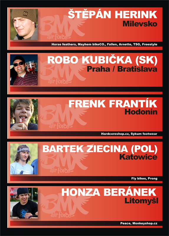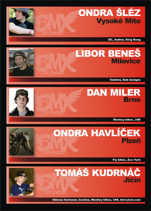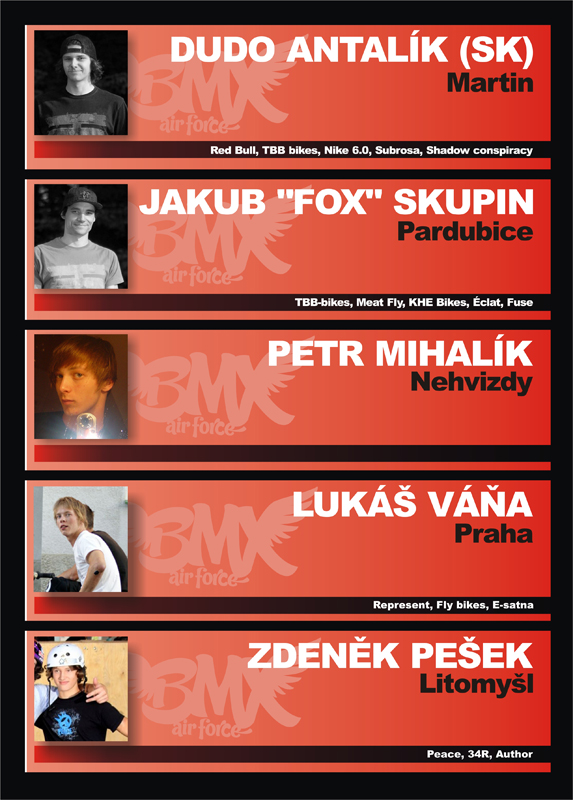 SEZNAM POZVANÝCH BMX RIDERŮ: