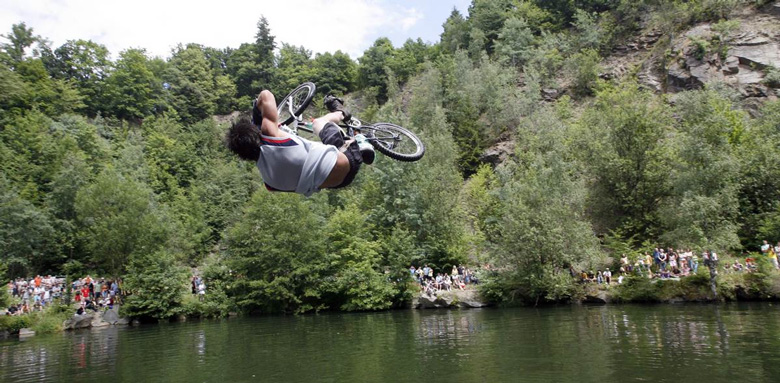 Pokud byste dostali chuť se zabavit i něčím jiným než pohledem na létající muže, můžete si hodit frisbeečkem, skouknout trialovou exhibici, vyzkoušet si spinning pois při žonglovacím workshopu. Novinkou bude natažená slackline a nafukovací skákadlo Pirát pro nejmenší. V prostorách lomu bude samozřejmě zajištěno občerstvení na bárku, kde si můžete dát nealko, pivko nebo okřídlenou energii. Hudební produkci obstarají djs v old school gangsta štýlu. Jména vítězů 4. ročníku závodu BIKE AND WATER v kategoriích bike a scooter se dozvíme okolo 17. hodiny.