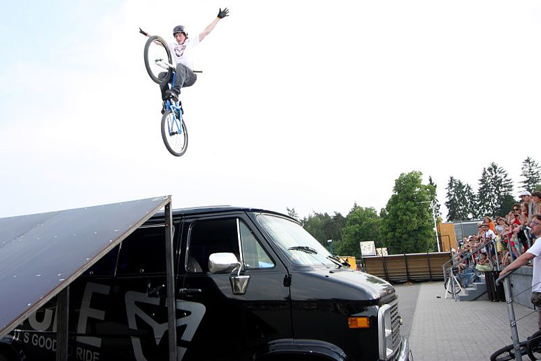 zítra se má jet tady na Kladně exhibice ve skocích přes Vehicle dodávku,