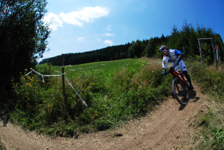 Dopoledne patřilo dvoukolovému závodu ve sjezdu, na nově upravené, téměř 750m dlouhé trati. Na start se postavilo 55 závodníků a 7 závodnic. Díky neúčasti koučů Filipa Matuše a Kubajsze Fišera celkem bez problémů zajel nejlepší čas a zvítězil v kategorii fullů Kamil Tatarkovič.