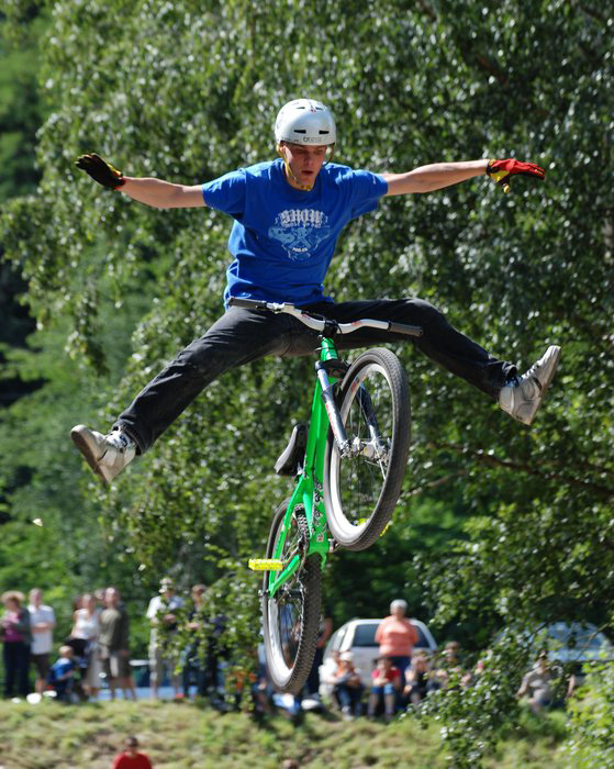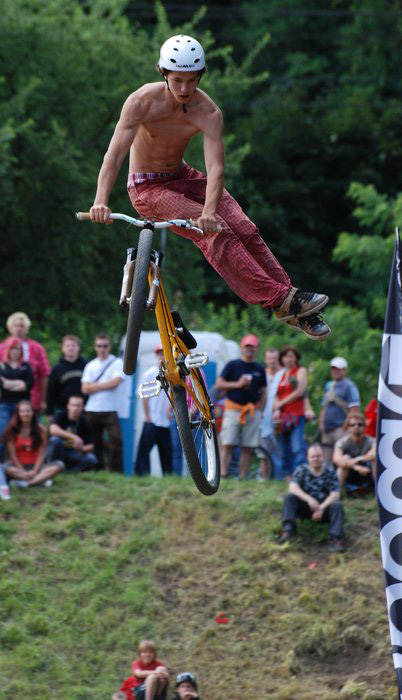 Finále kategorie MTB se jelo už v o poznání hrubším stylu. Triků začalo padat nespočet. Od Mlaďákových supermanů a třišestek, přes Netrovo prokopnuté indiány, 360 a 360 opposite až po Klauzíkovo one footed backflip x-up nebo pendulum v atletickém stylu.